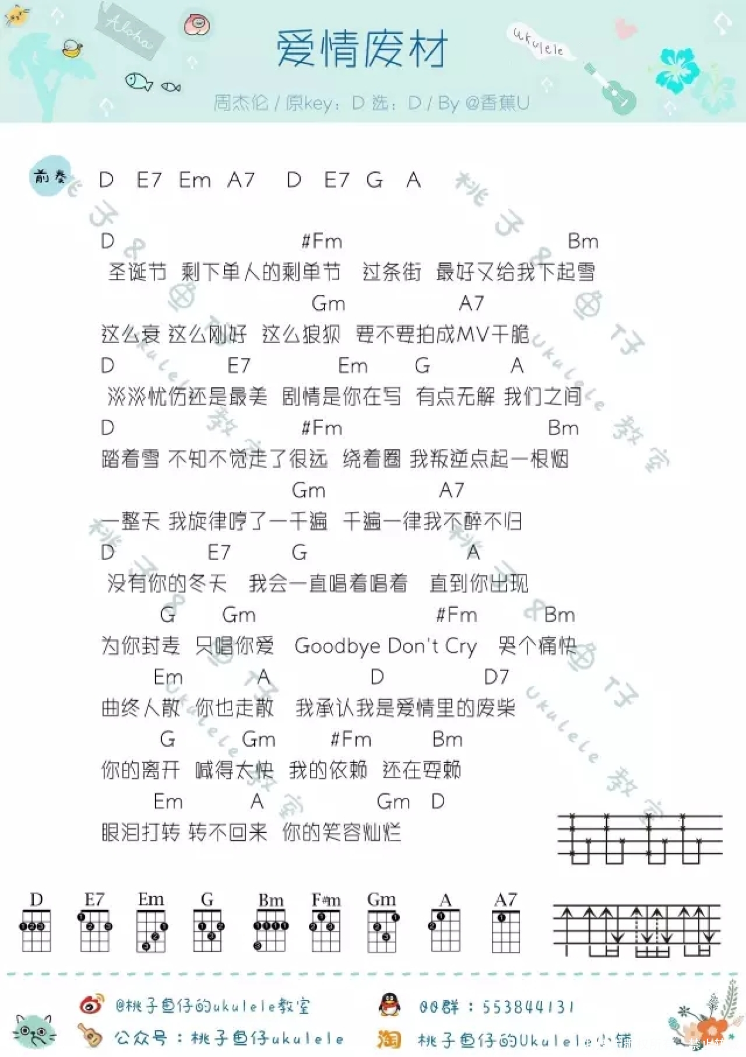 曲谱介绍: 周杰伦《爱情废柴》_D调尤克里里谱
