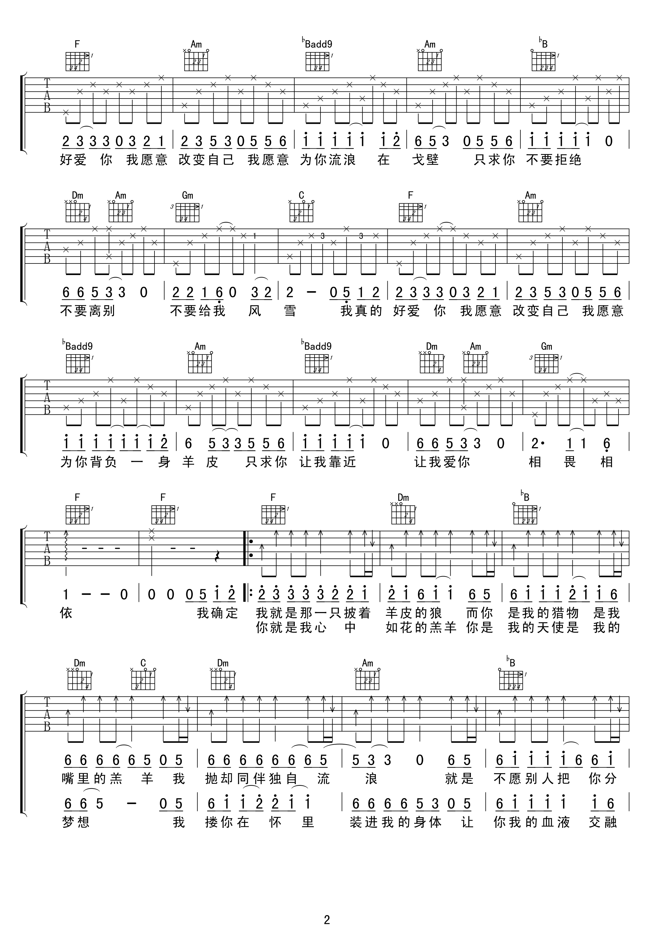 当前位置:琴谱网>吉他弹唱>披着羊皮的狼