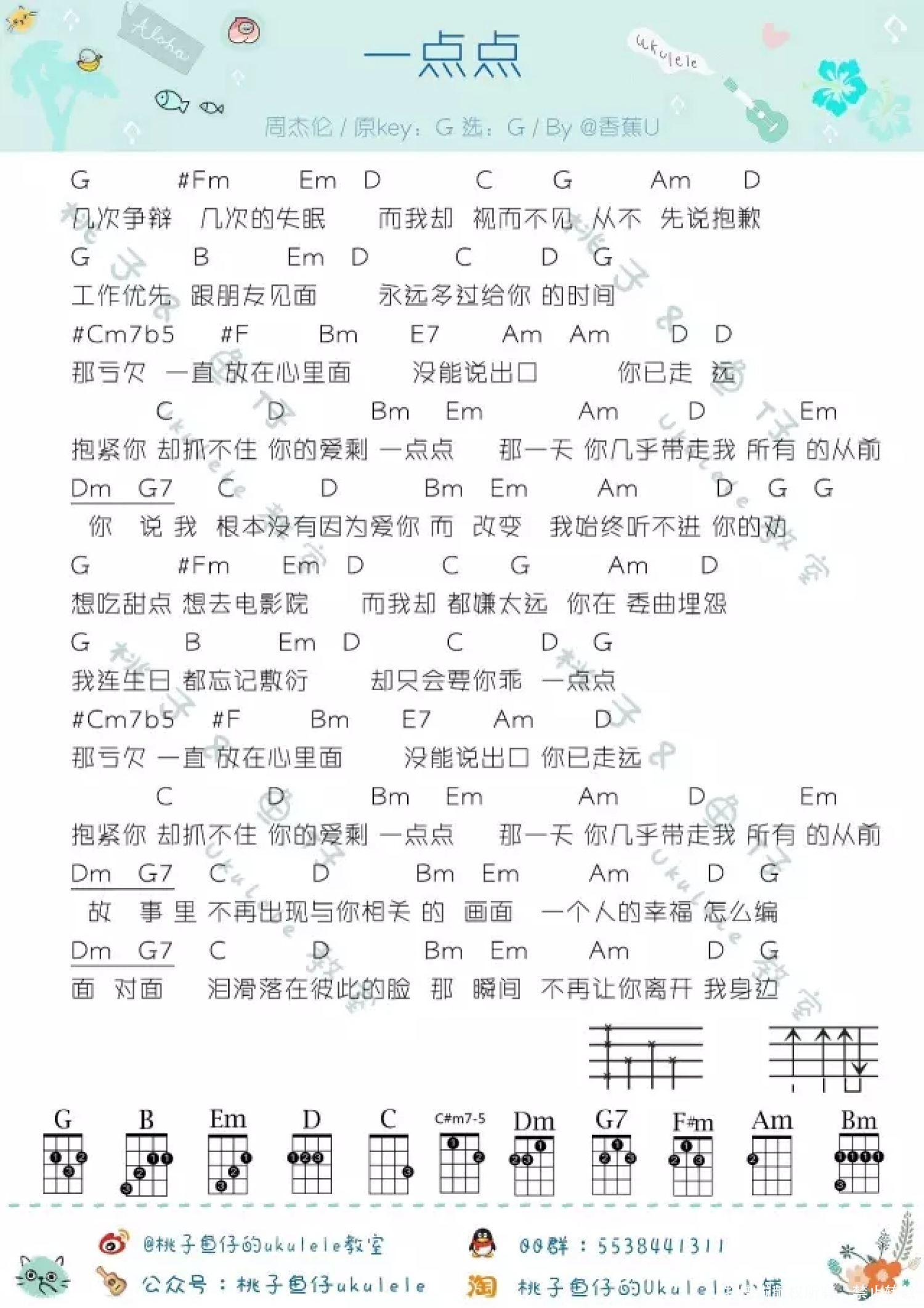 曲谱介绍: 周杰伦《一点点》_G调尤克里里谱