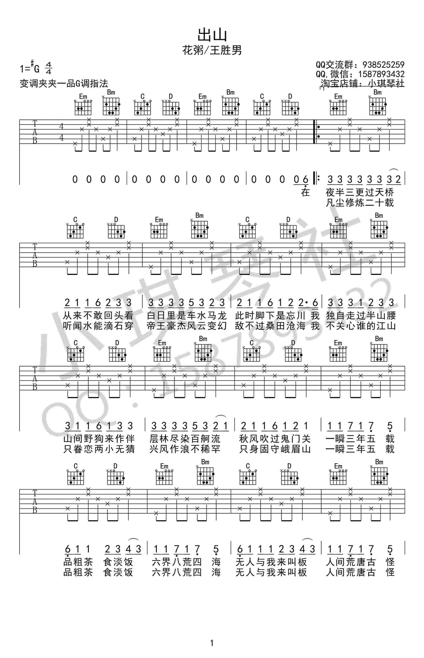 出山吉他谱 - 花粥 - G调吉他弹唱谱