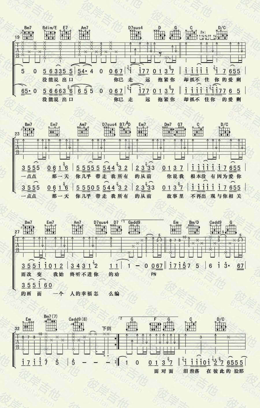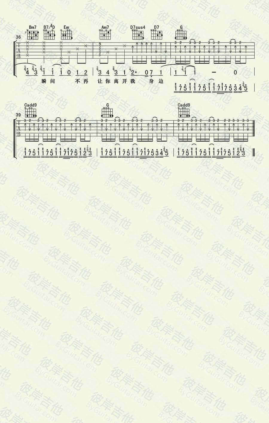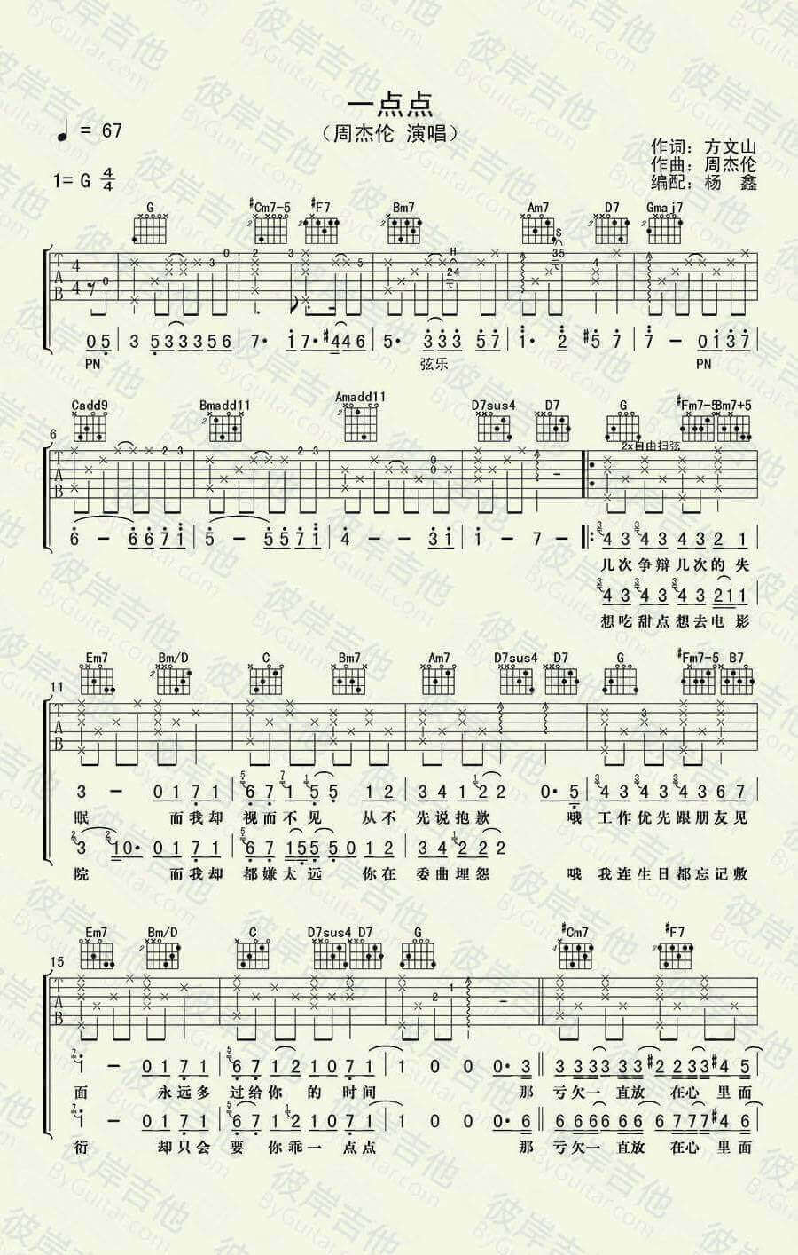 曲谱介绍: 一点点吉他谱采用了G调指法,由彼岸吉他编配完成。