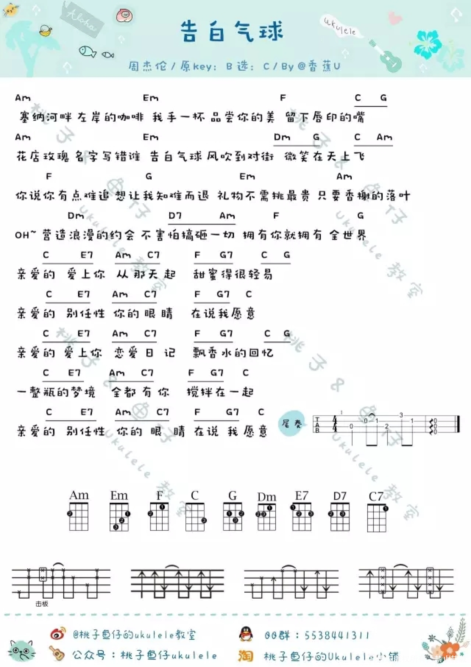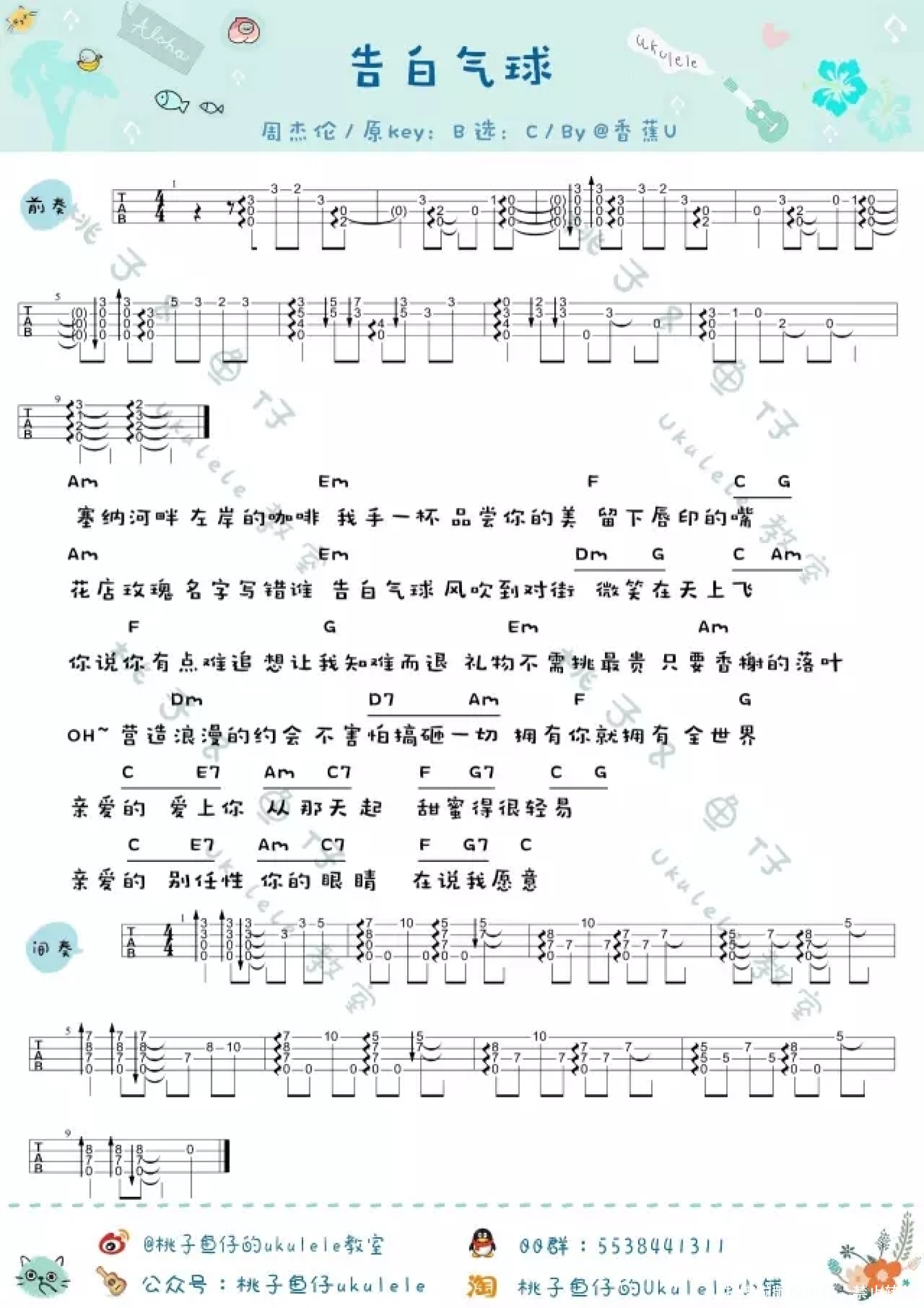 曲谱介绍: 周杰伦《告白气球》_C调尤克里里谱
