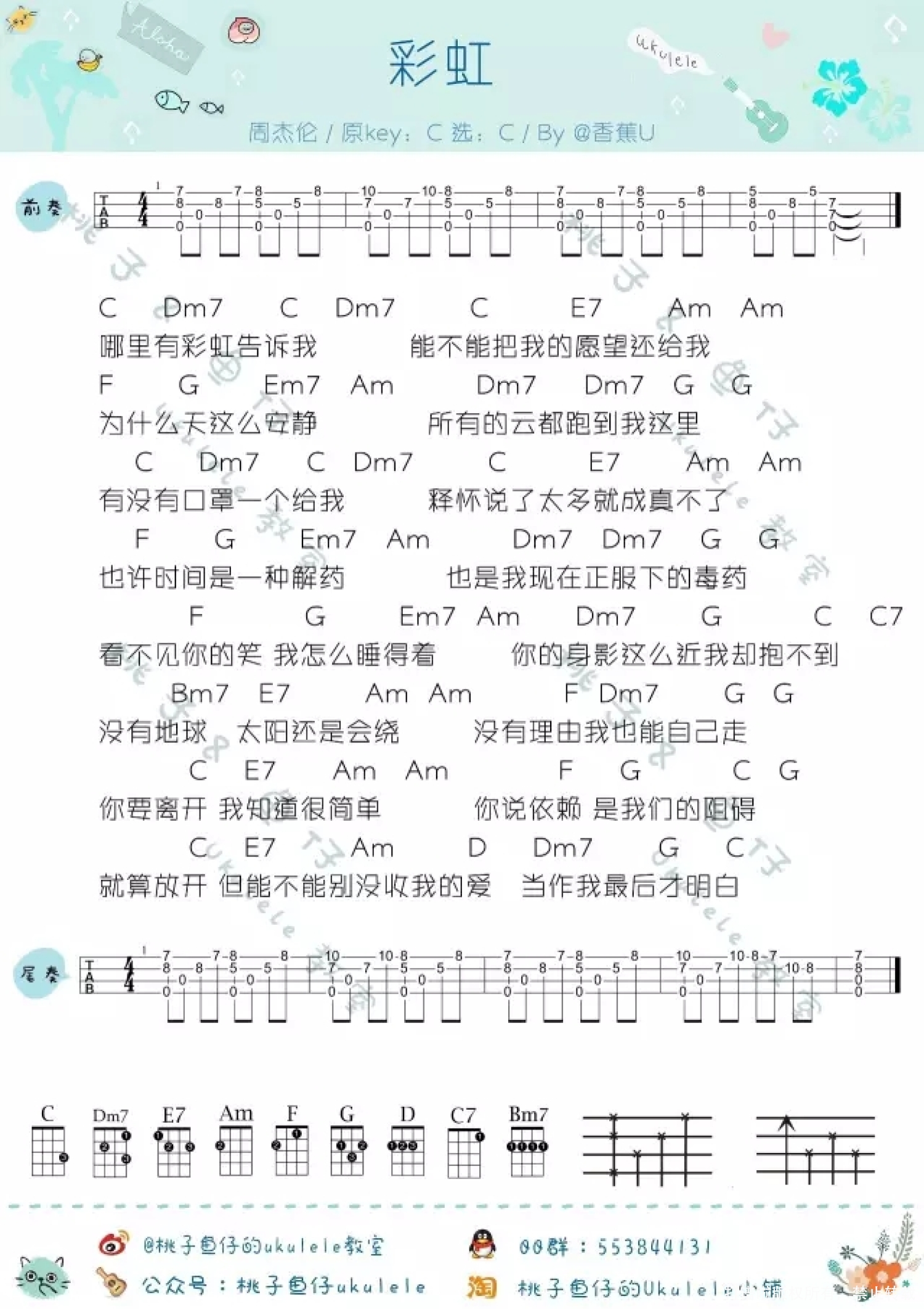 曲谱介绍: 周杰伦《彩虹》_C调尤克里里谱