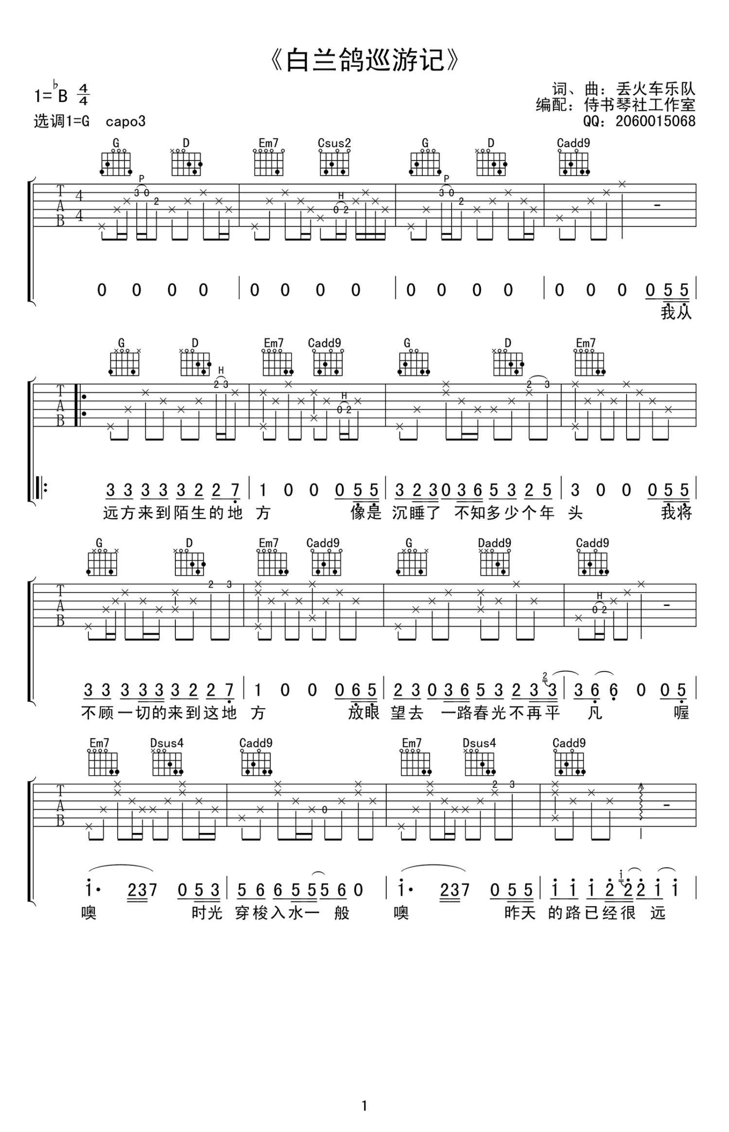 白兰鸽巡游记吉他谱 - 丢火车乐队 - G调吉他弹唱谱