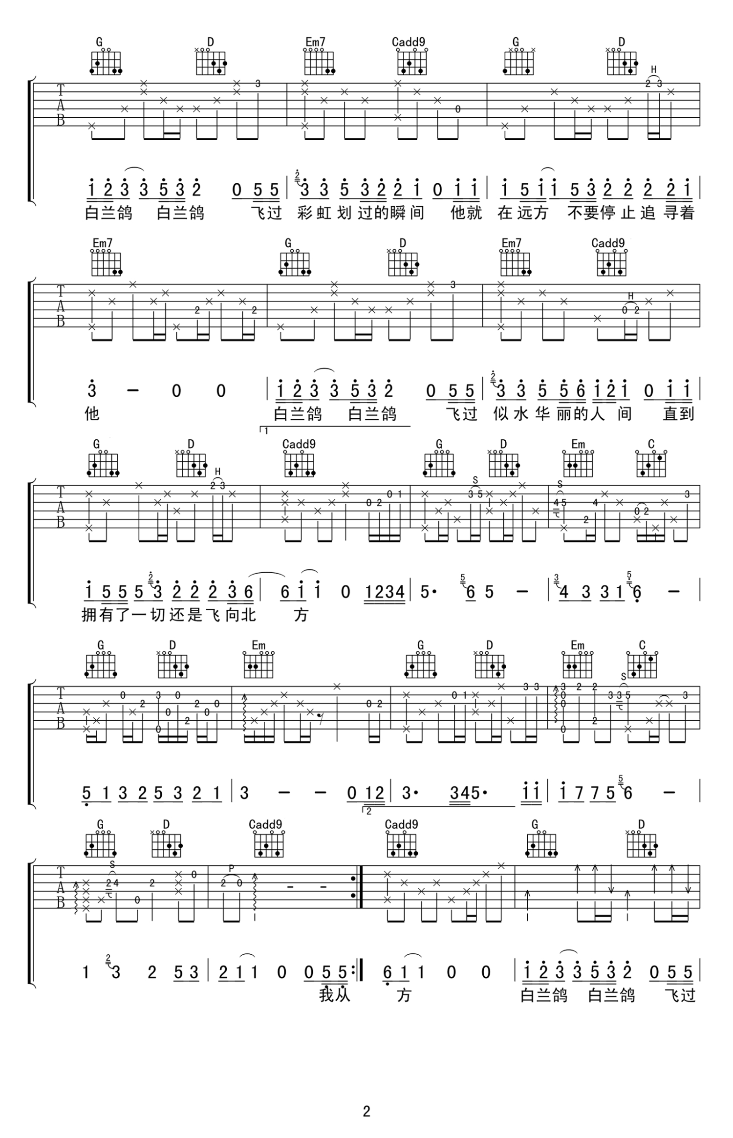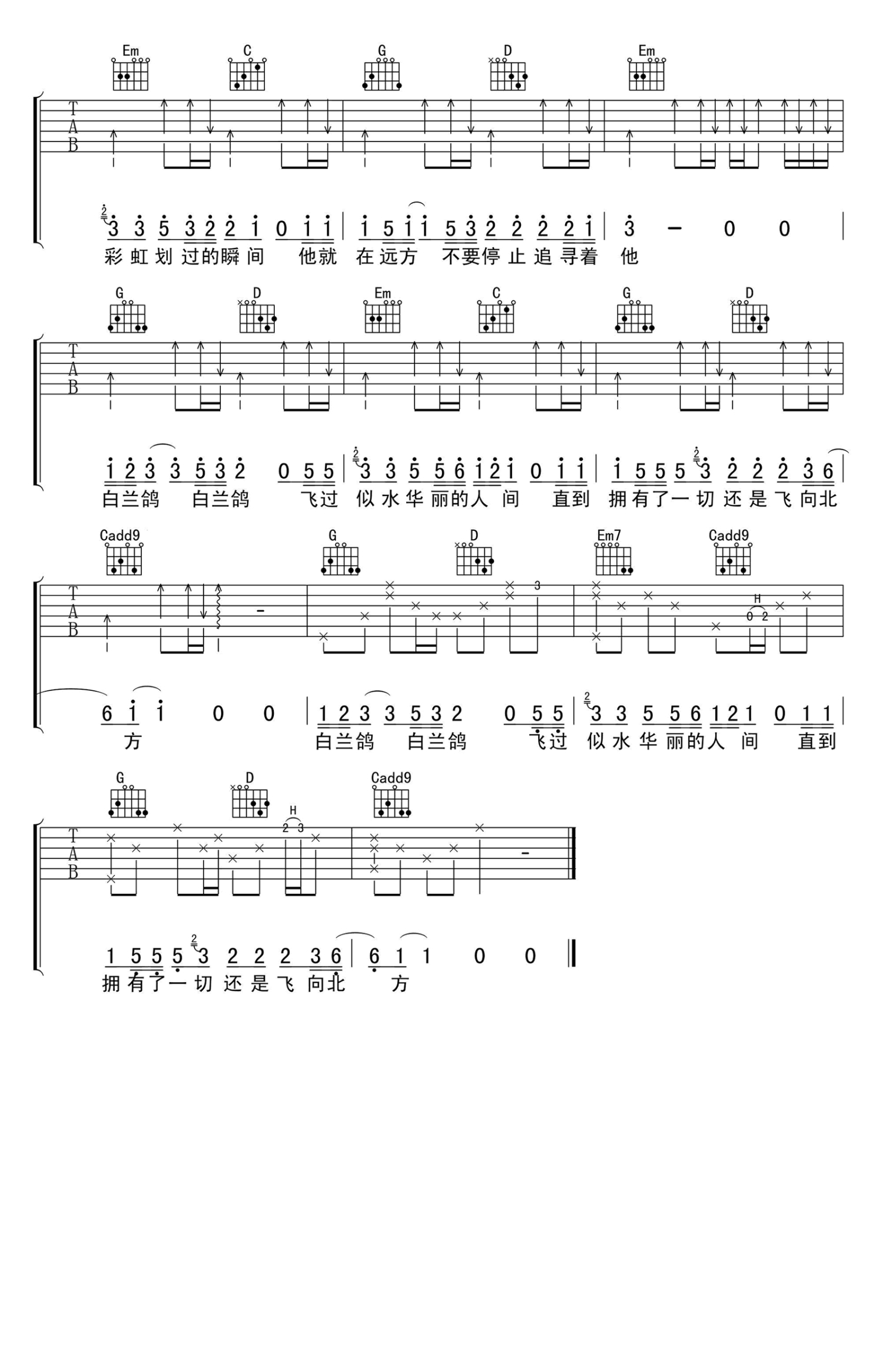 当前位置:琴谱网>吉他弹唱>白兰鸽巡游记
