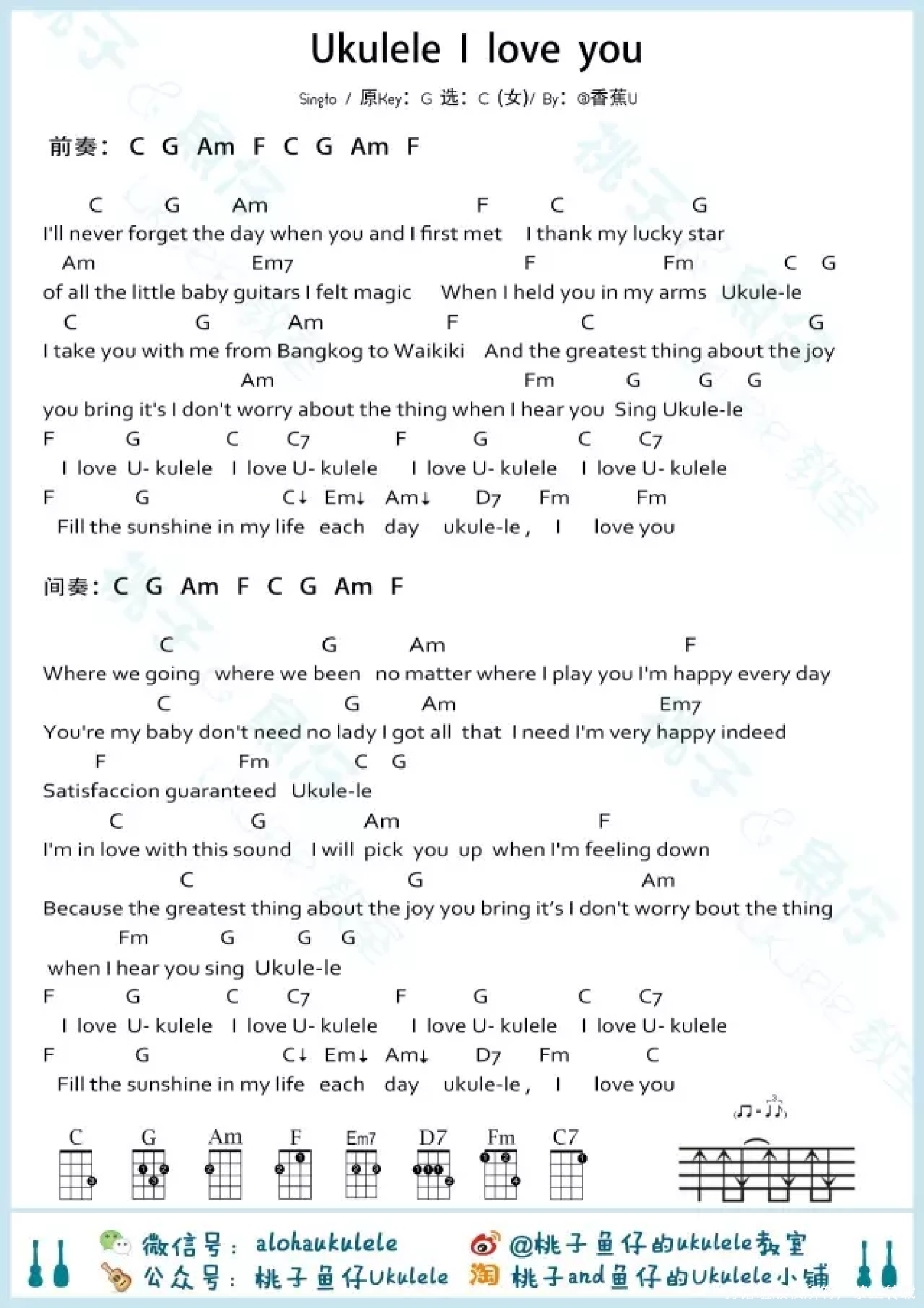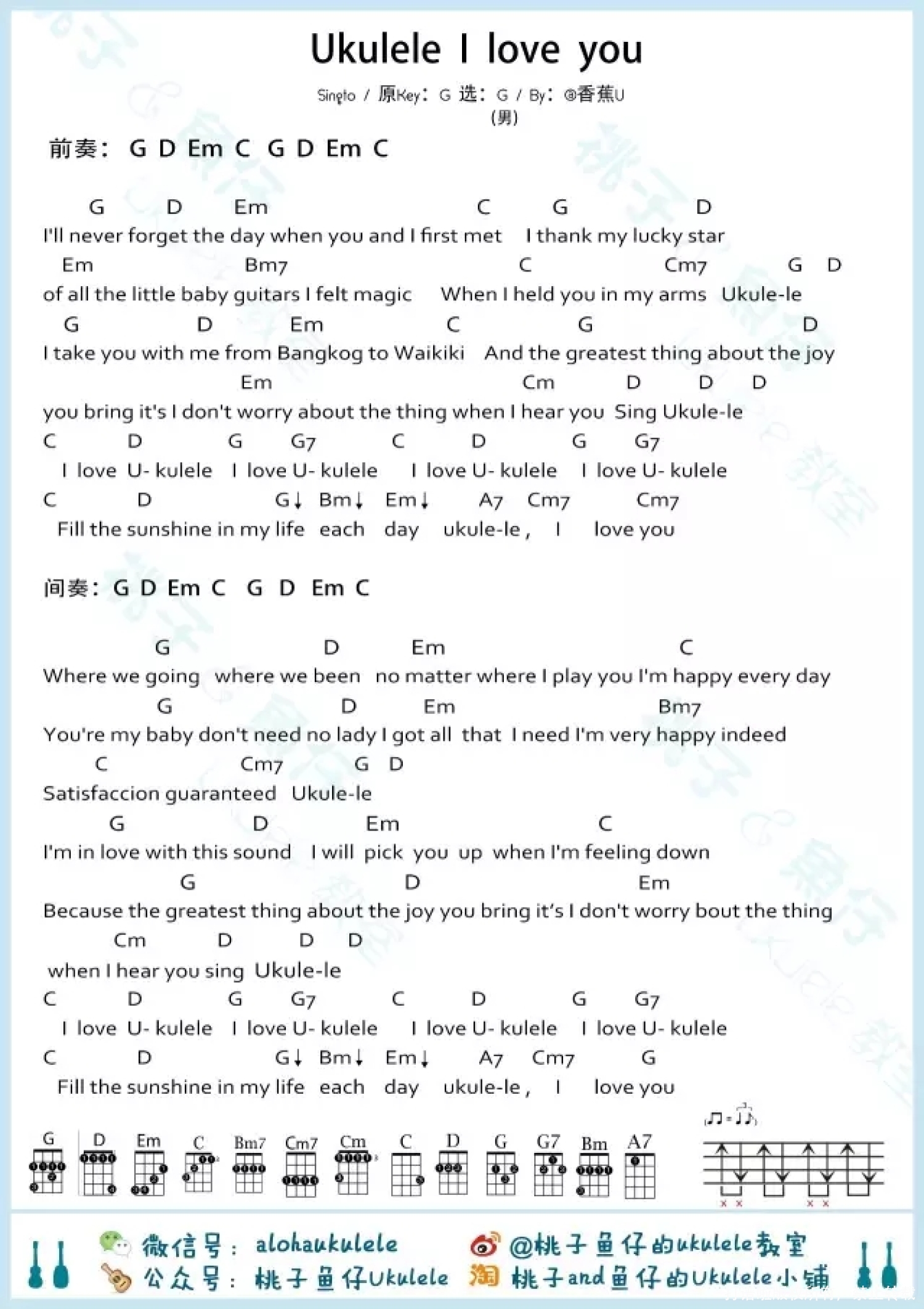 曲谱介绍: Singto《Ukulele I Love You》_G调尤克里里谱