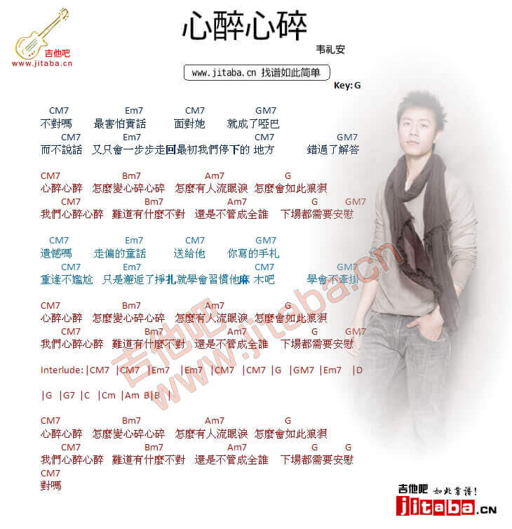 心醉心碎吉他谱 - 韦礼安 - G调吉他弹唱谱