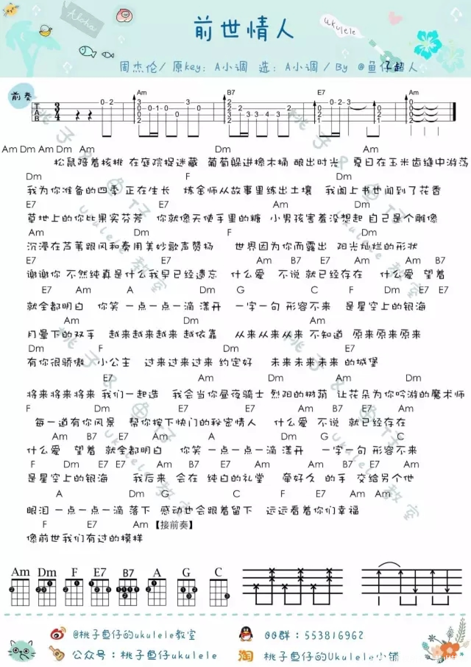 曲谱介绍: 周杰伦《前世情人》_A调尤克里里谱