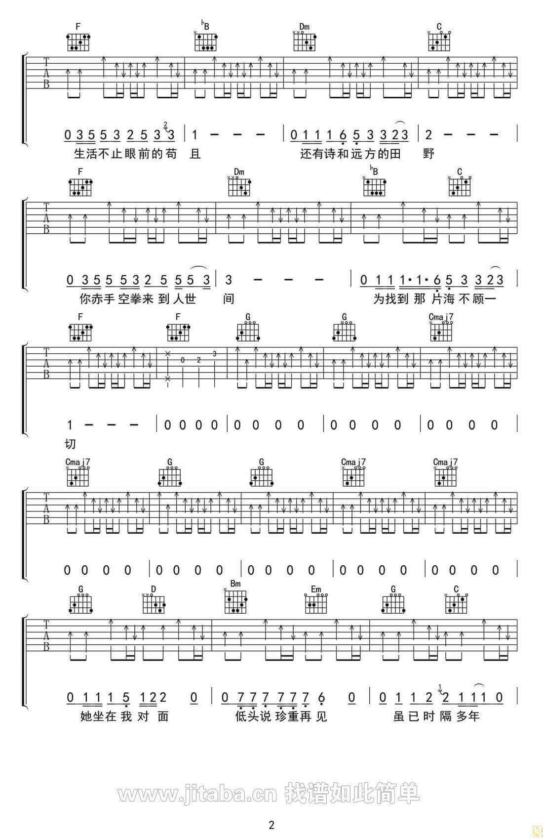 曲谱介绍: 生活不止眼前的苟且吉他谱采用了A调指法,由Tommy编配完成。