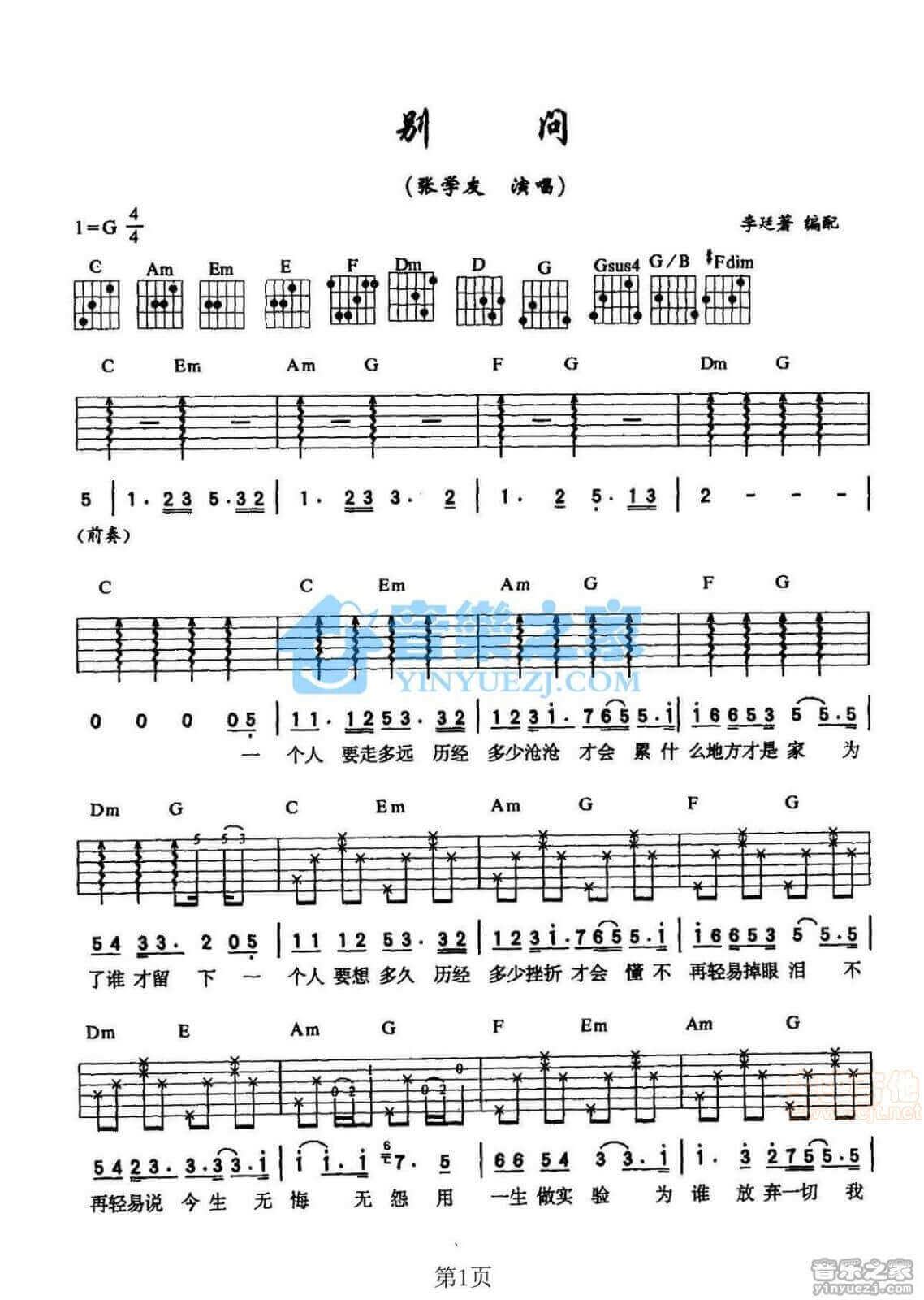 别问吉他谱 - 张学友 - G调吉他弹唱谱