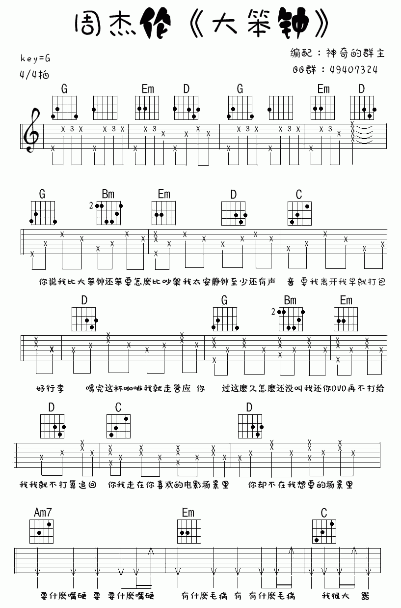 大笨钟吉他谱 - 周杰伦 - G调吉他弹唱谱