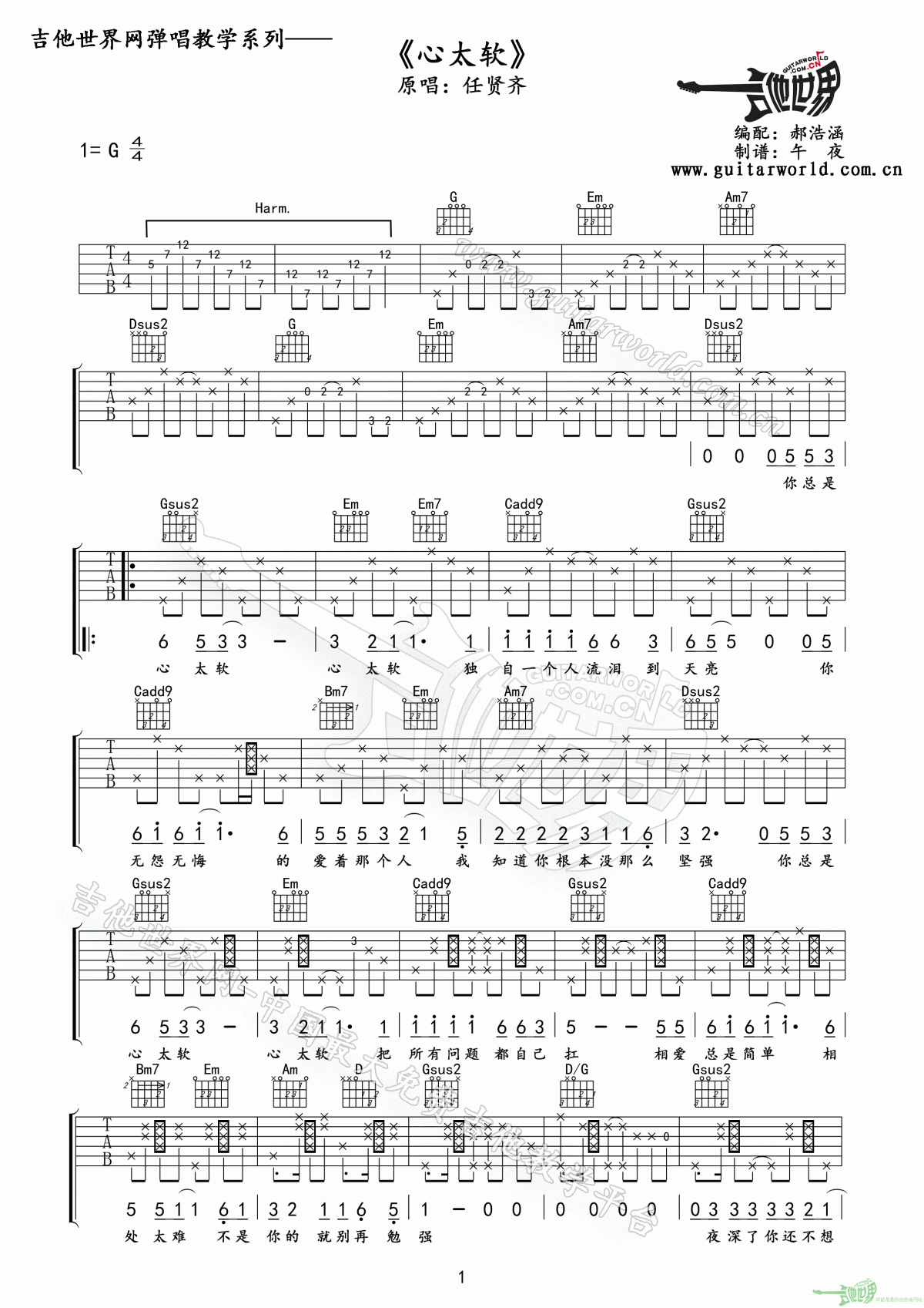 心太软吉他谱 - 任贤齐 - G调吉他弹唱谱