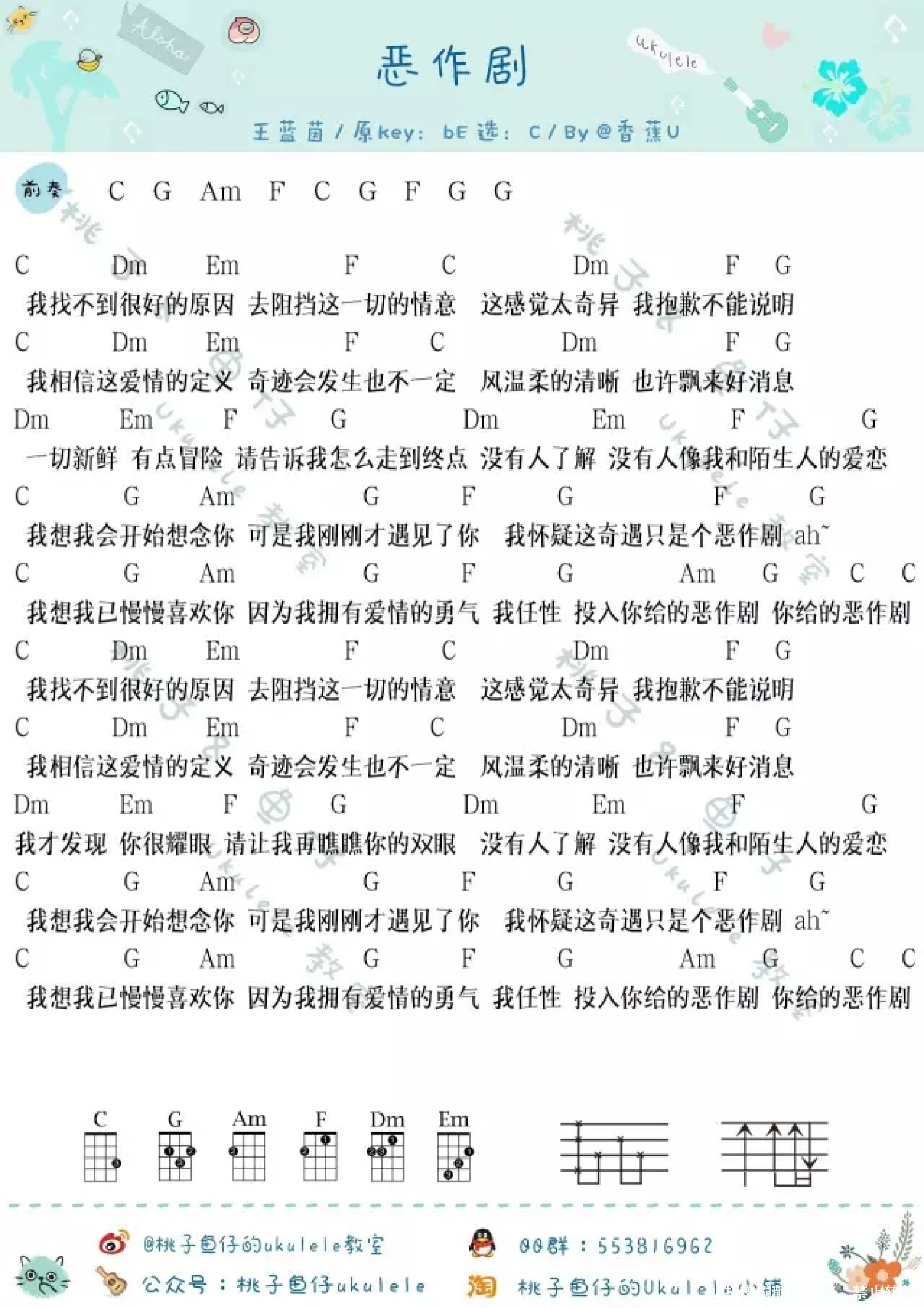 曲谱介绍: 恶作剧之吻插曲《恶作剧》_C调尤克里里谱