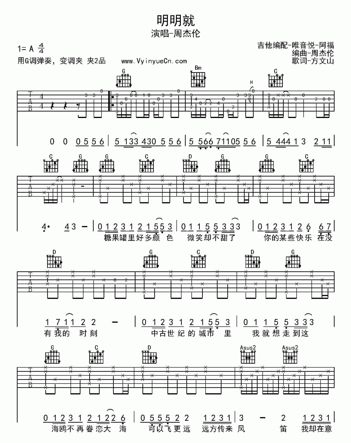 明明就吉他谱 - 周杰伦 - G调吉他弹唱谱