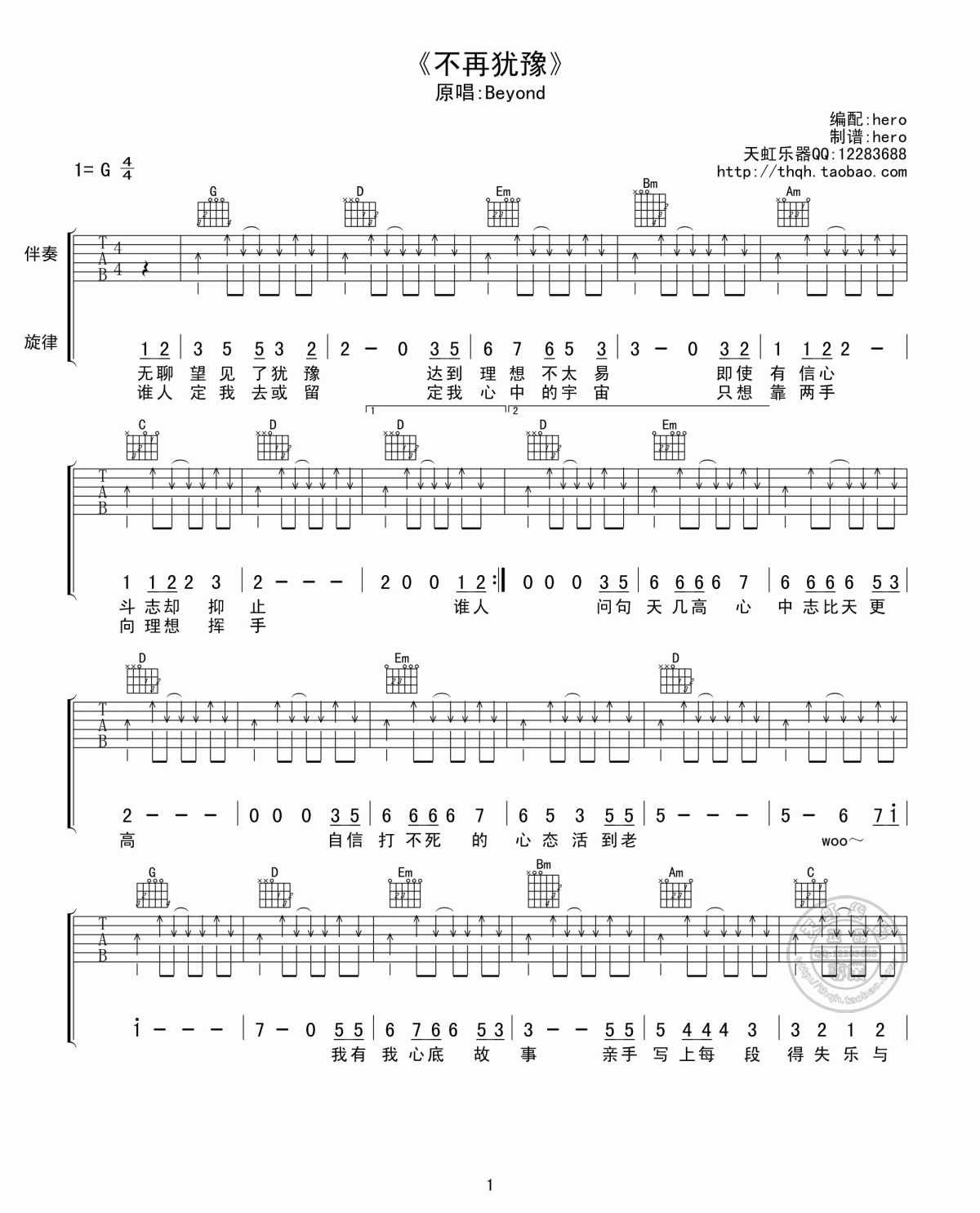曲谱介绍: 不再犹豫吉他谱Beyond的一首经典音乐作品,不再犹豫吉他谱选用G调。这首歌收录在1991年发行的犹豫的专辑中。在beyond的自传电影中,莫居很穷。这首歌也作为电影的一集出现。喜欢beyond歌曲的音乐家可以参照音乐来练习唱歌。