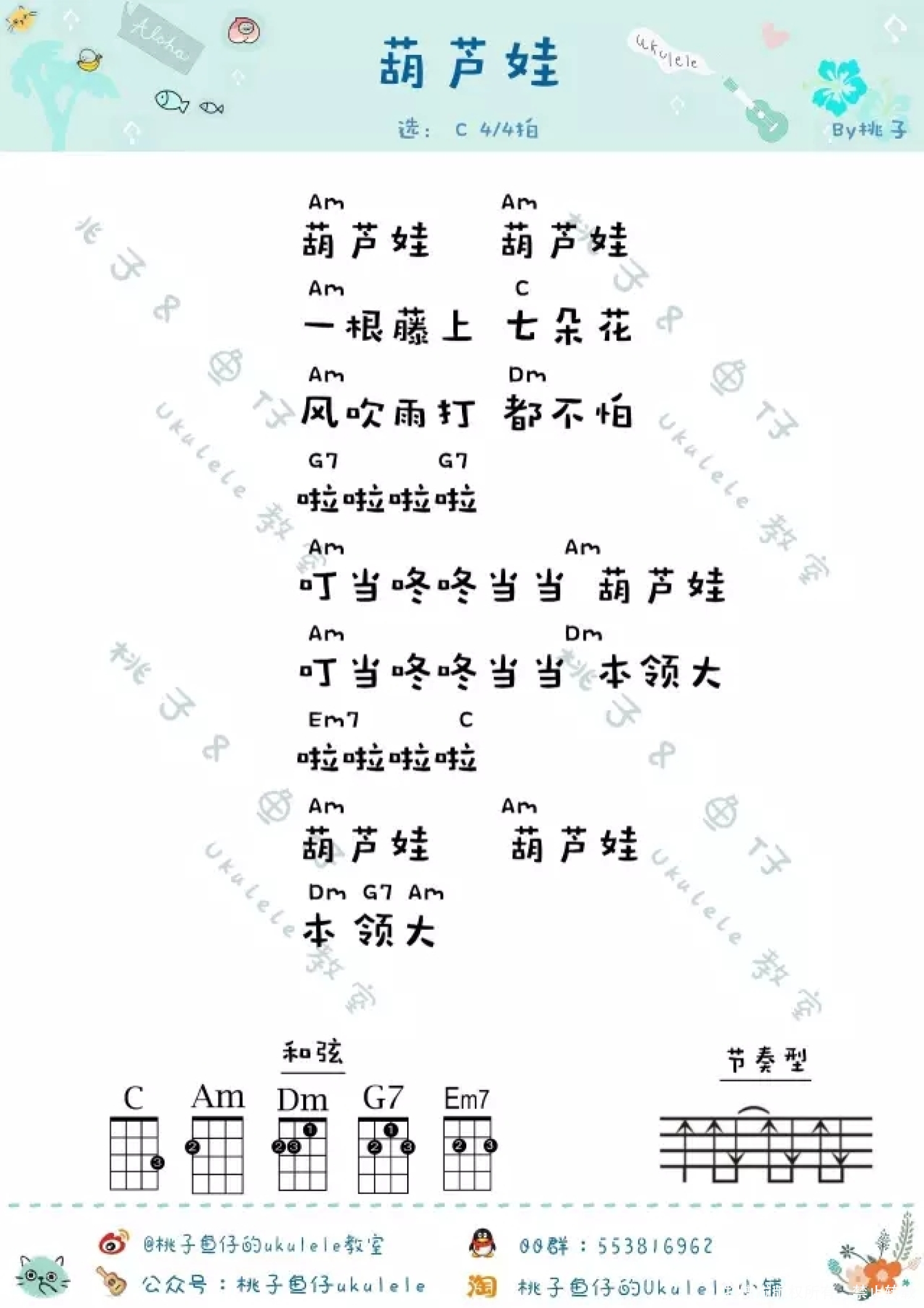 曲谱介绍: 葫芦娃动画主题曲《葫芦娃》_C调尤克里里谱