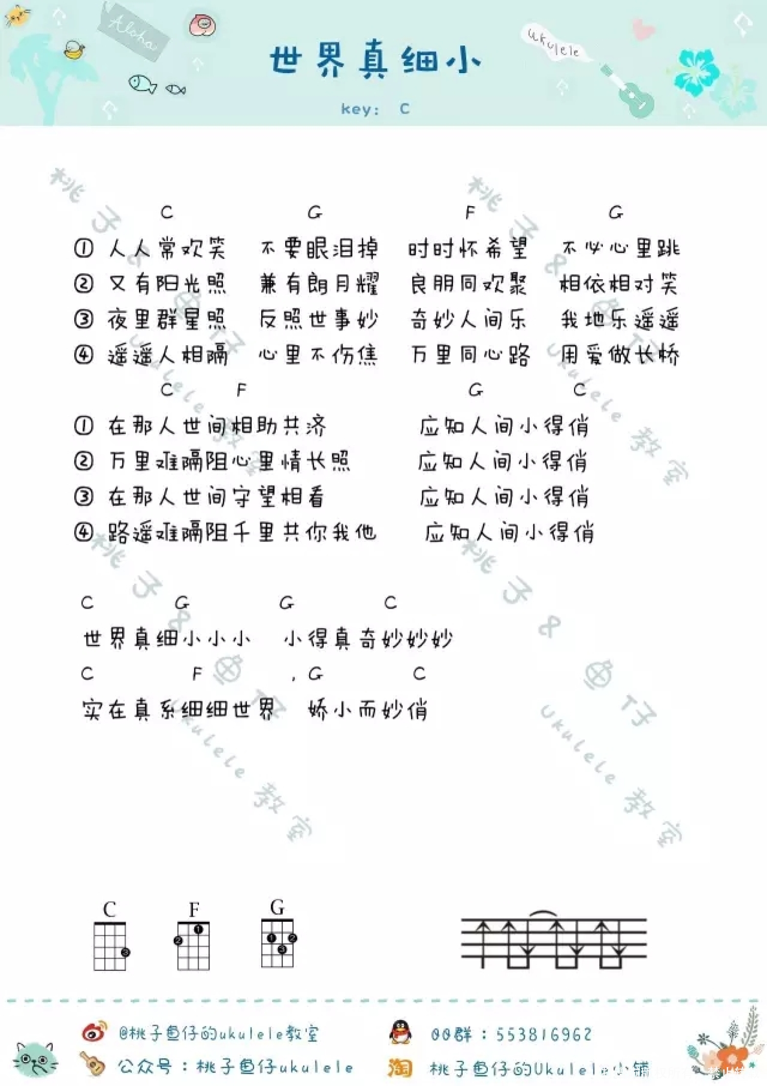 曲谱介绍: 儿歌《世界真细小》_C调尤克里里谱