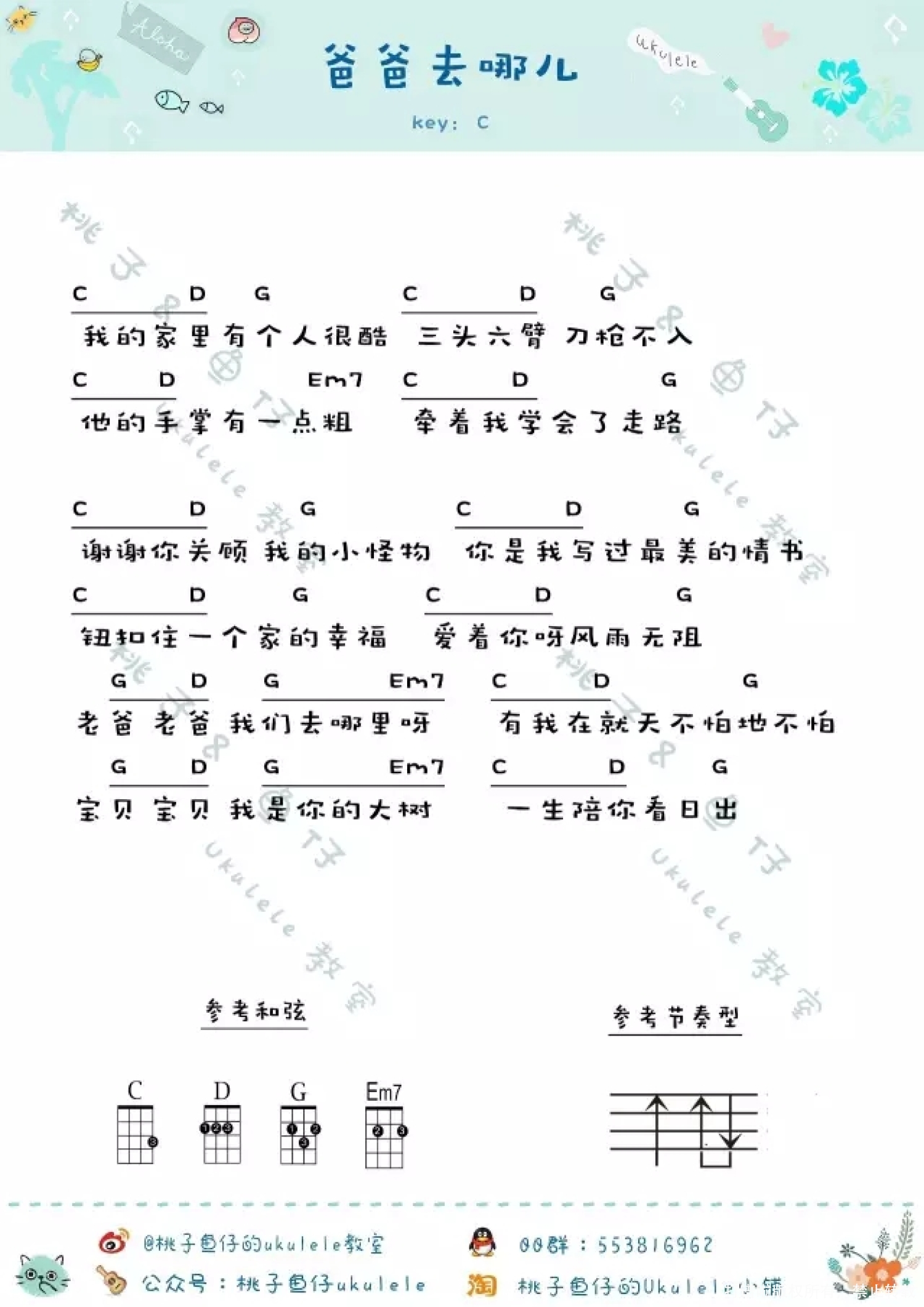 曲谱介绍: 儿歌《爸爸去哪儿》_C调尤克里里谱