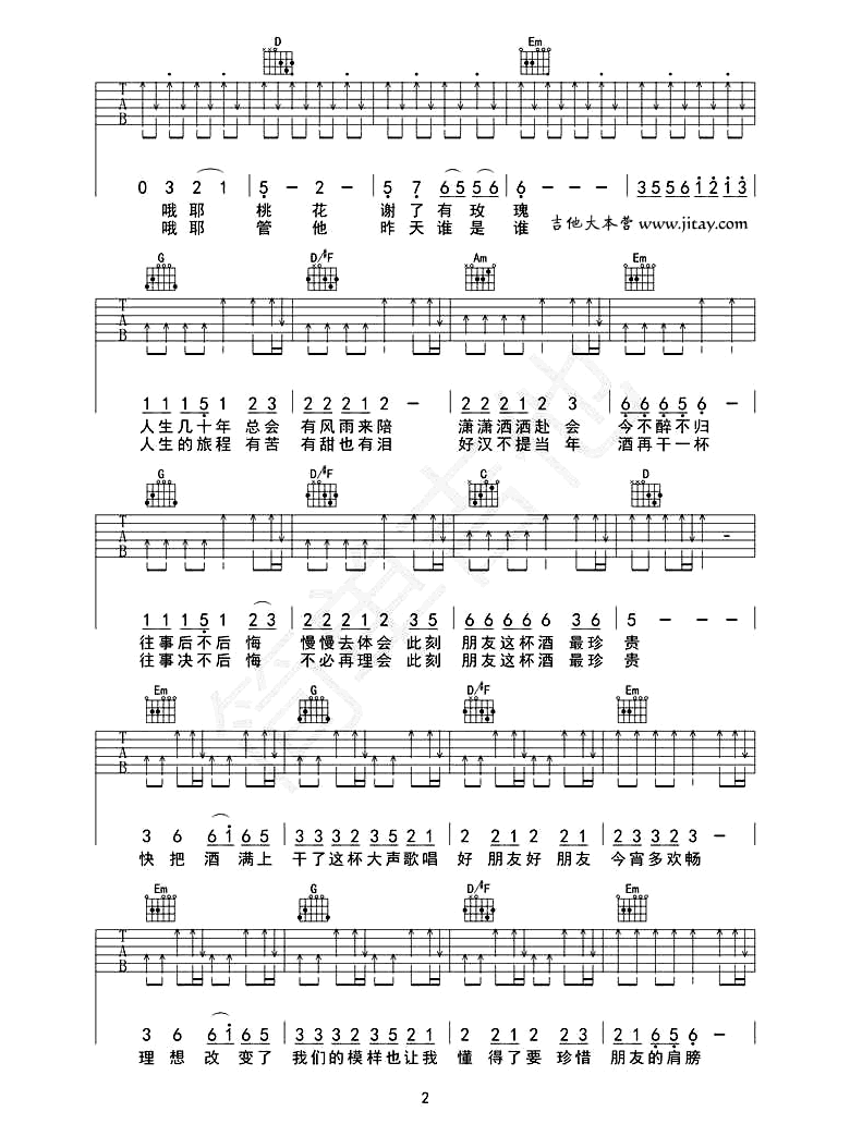 琴谱网为您精心推荐 朋友的酒 高清图谱