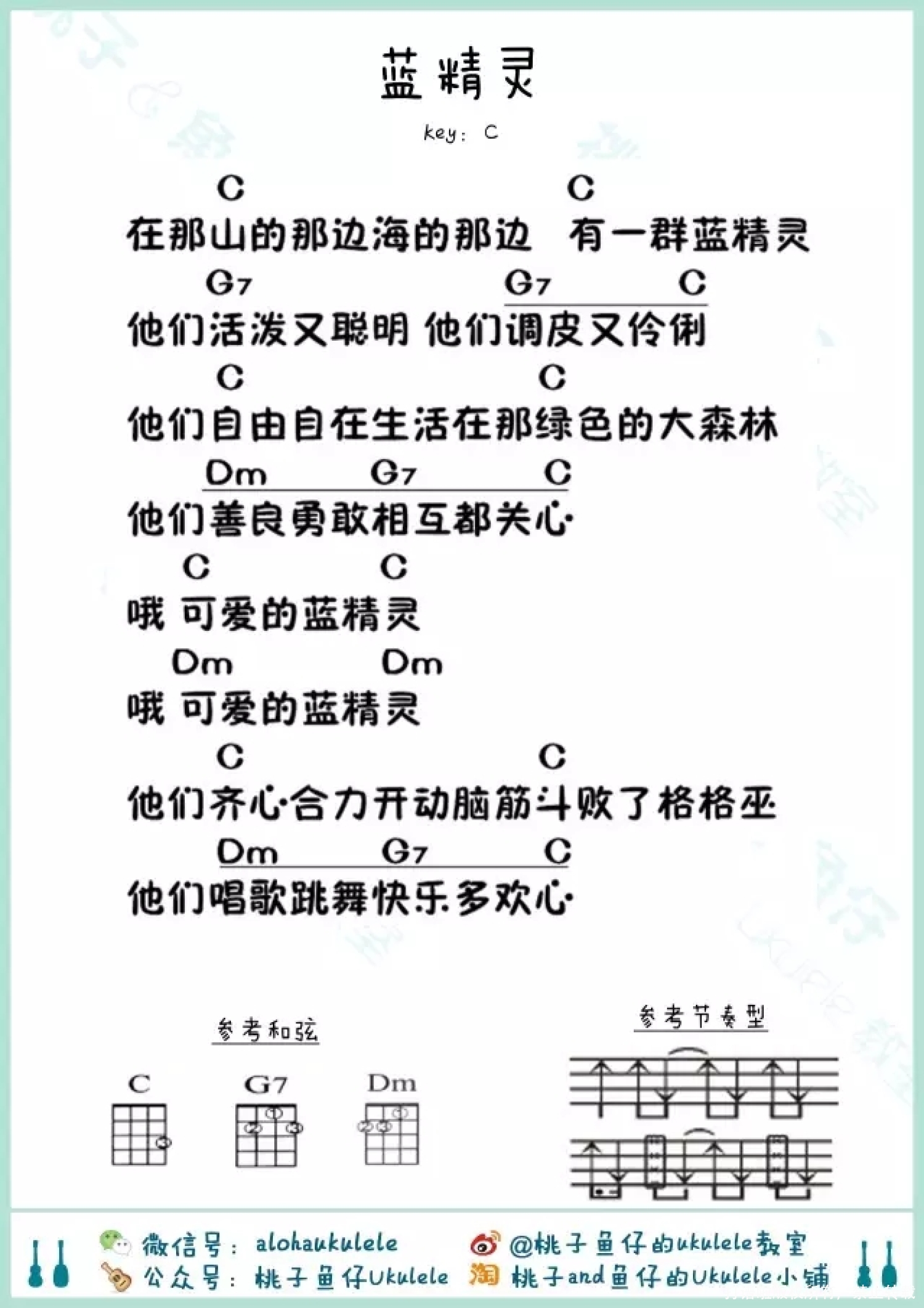曲谱介绍: 儿歌《蓝精灵》_C调尤克里里谱