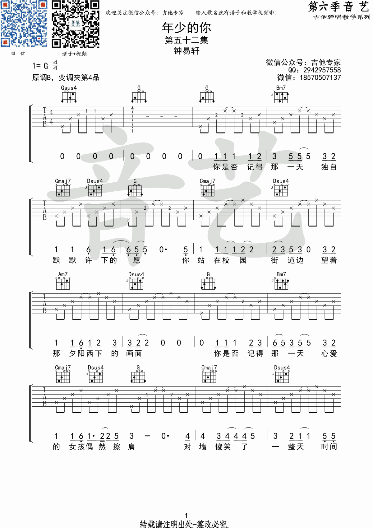 年少的你吉他谱 - G调吉他弹唱谱