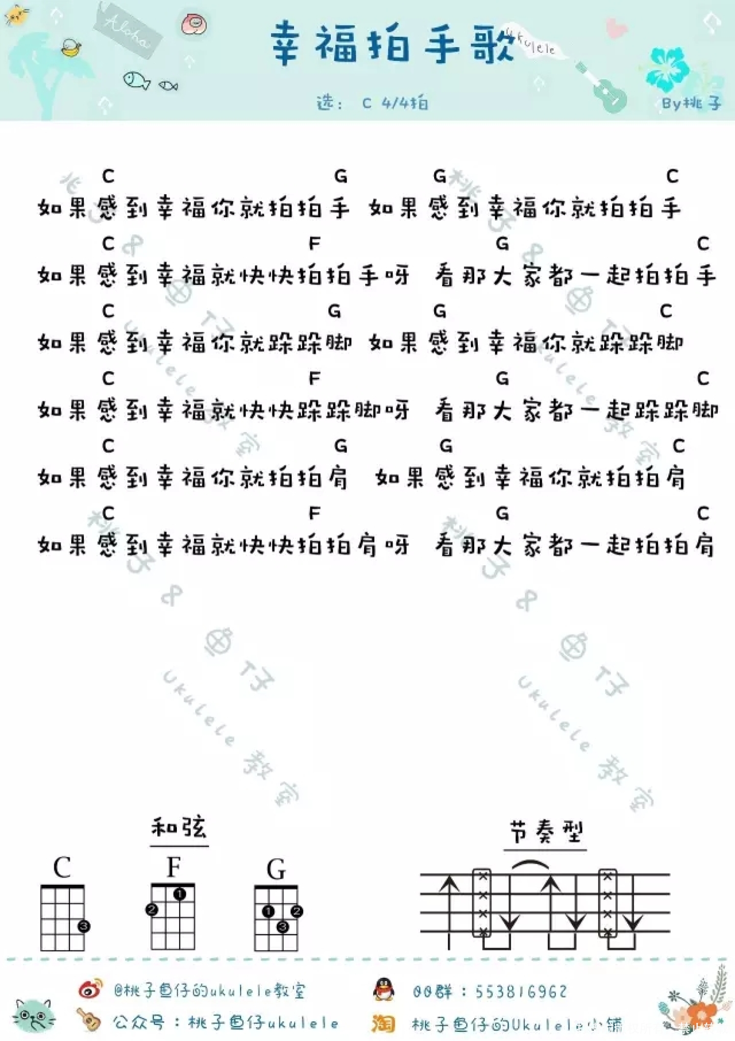曲谱介绍: 儿歌《幸福拍手歌》_C调尤克里里谱