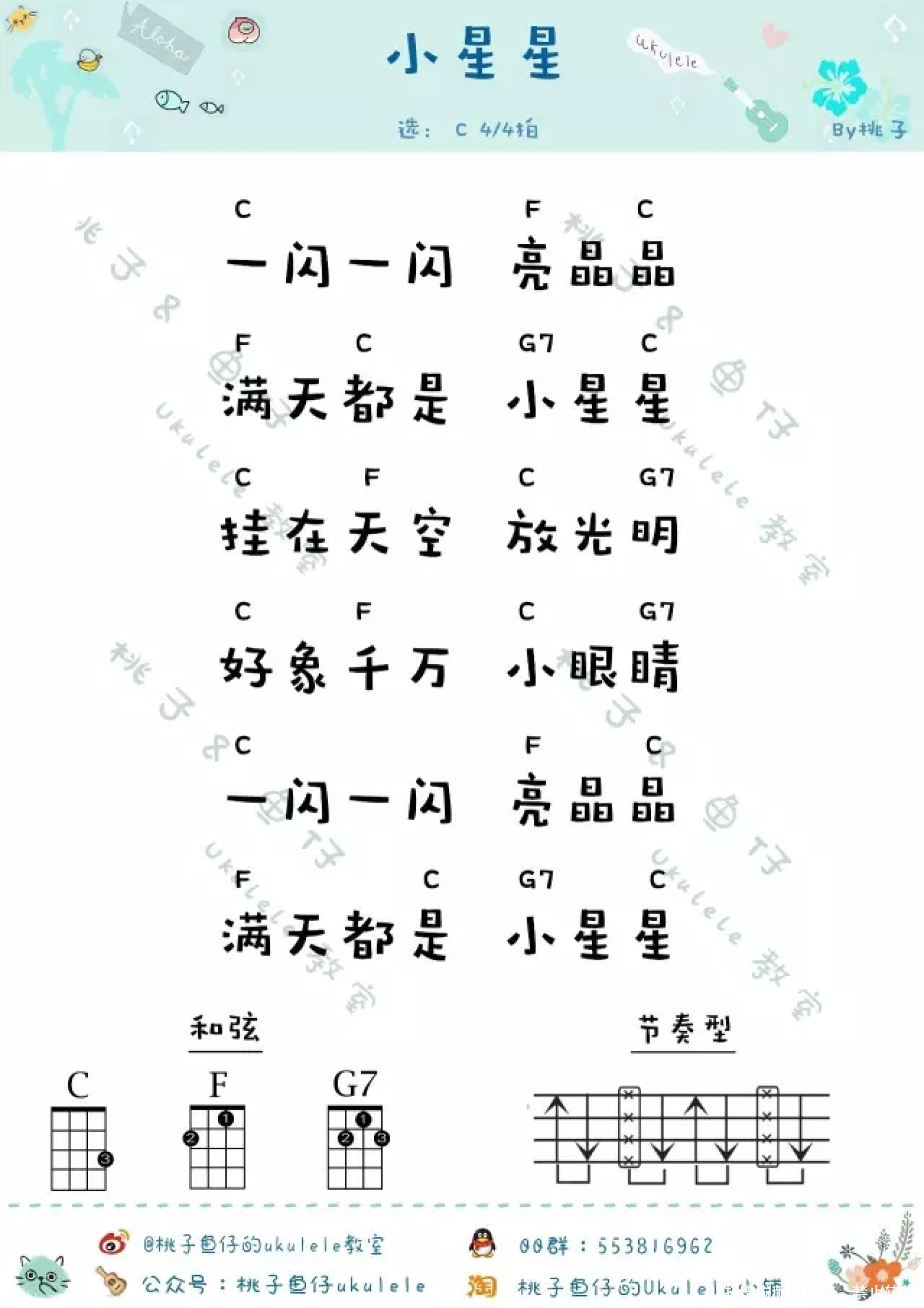 曲谱介绍: 儿歌《小星星》_C调尤克里里谱
