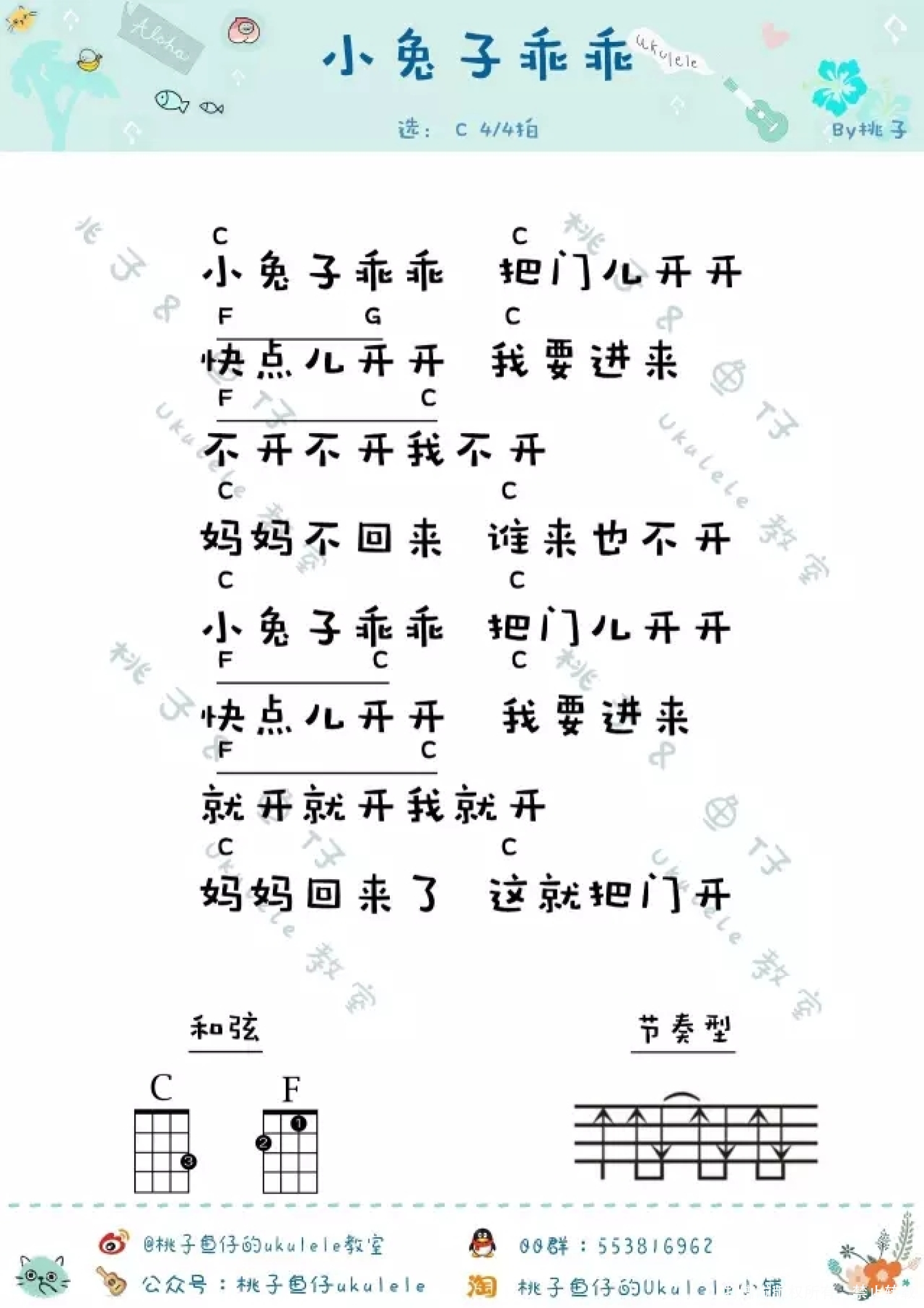 曲谱介绍: 儿歌《小兔子乖乖》_C调尤克里里谱
