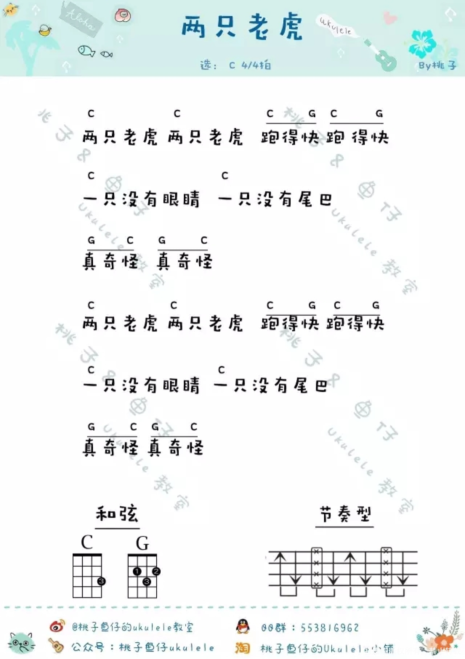 两只老虎尤克里里谱