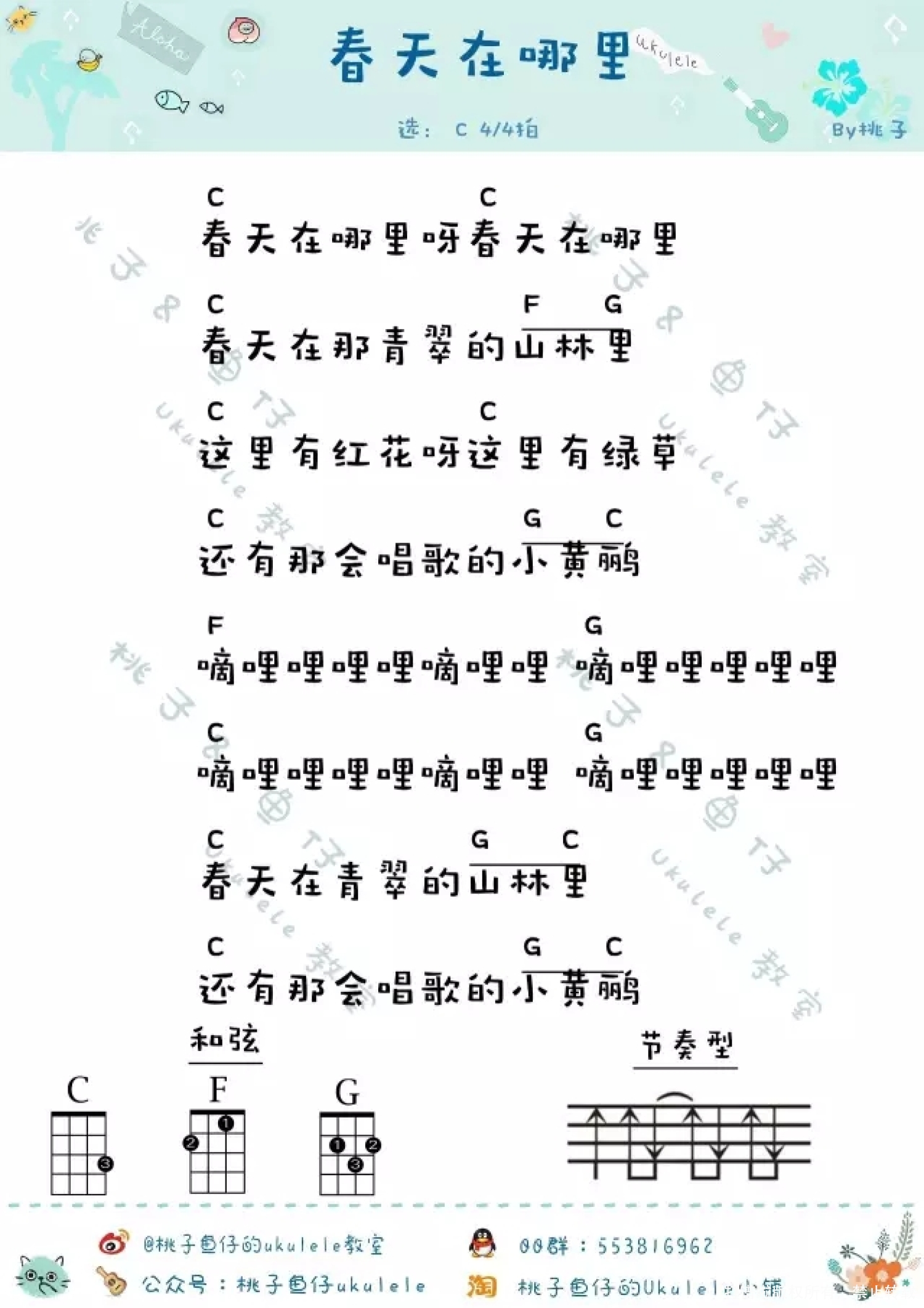 曲谱介绍: 《春天在哪里》_C调尤克里里谱
