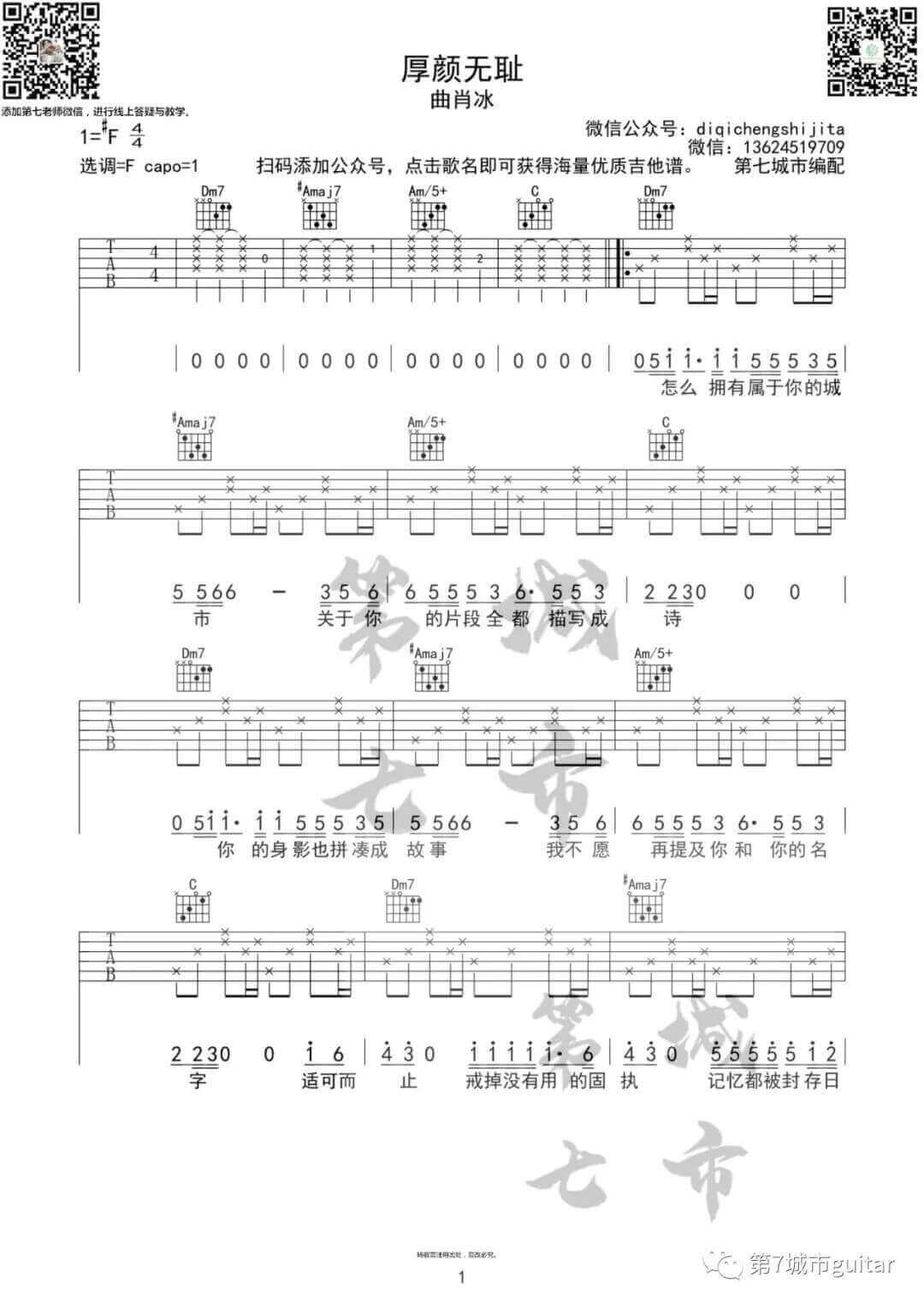 厚颜无耻吉他谱 - 曲肖冰 - F调吉他弹唱谱 - 原版