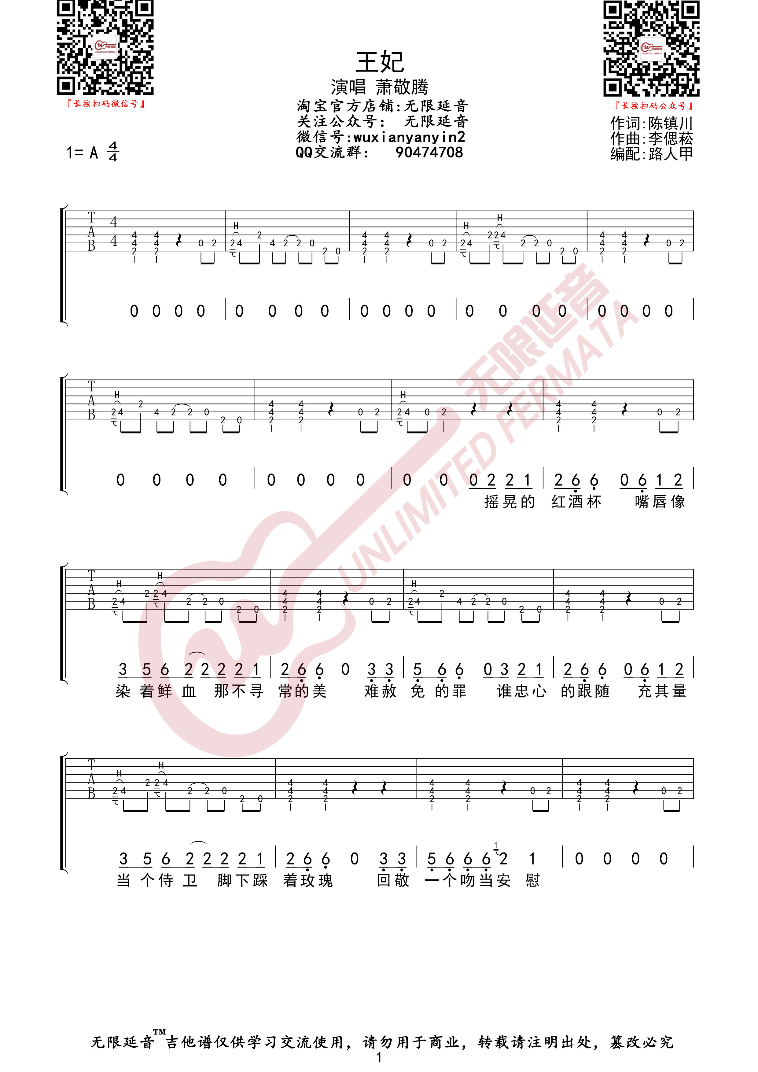 曲谱介绍: 王妃吉他谱_萧敬腾_《王妃》A调原版弹唱谱_高清六线谱分享,《王妃》是由萧敬腾演唱的歌曲,一说起萧敬腾就会想起“雨神”这个词,挺喜欢萧敬腾演唱的《王妃》这首歌,带着一种震撼感。从前奏开始就带着惊喜,副歌部分更是好听,最后的咆哮真的是完美收声。高贵的王妃,低微的侍卫,为爱也会去痛一回,“我的王妃,我要霸占你的美”,霸气十足。