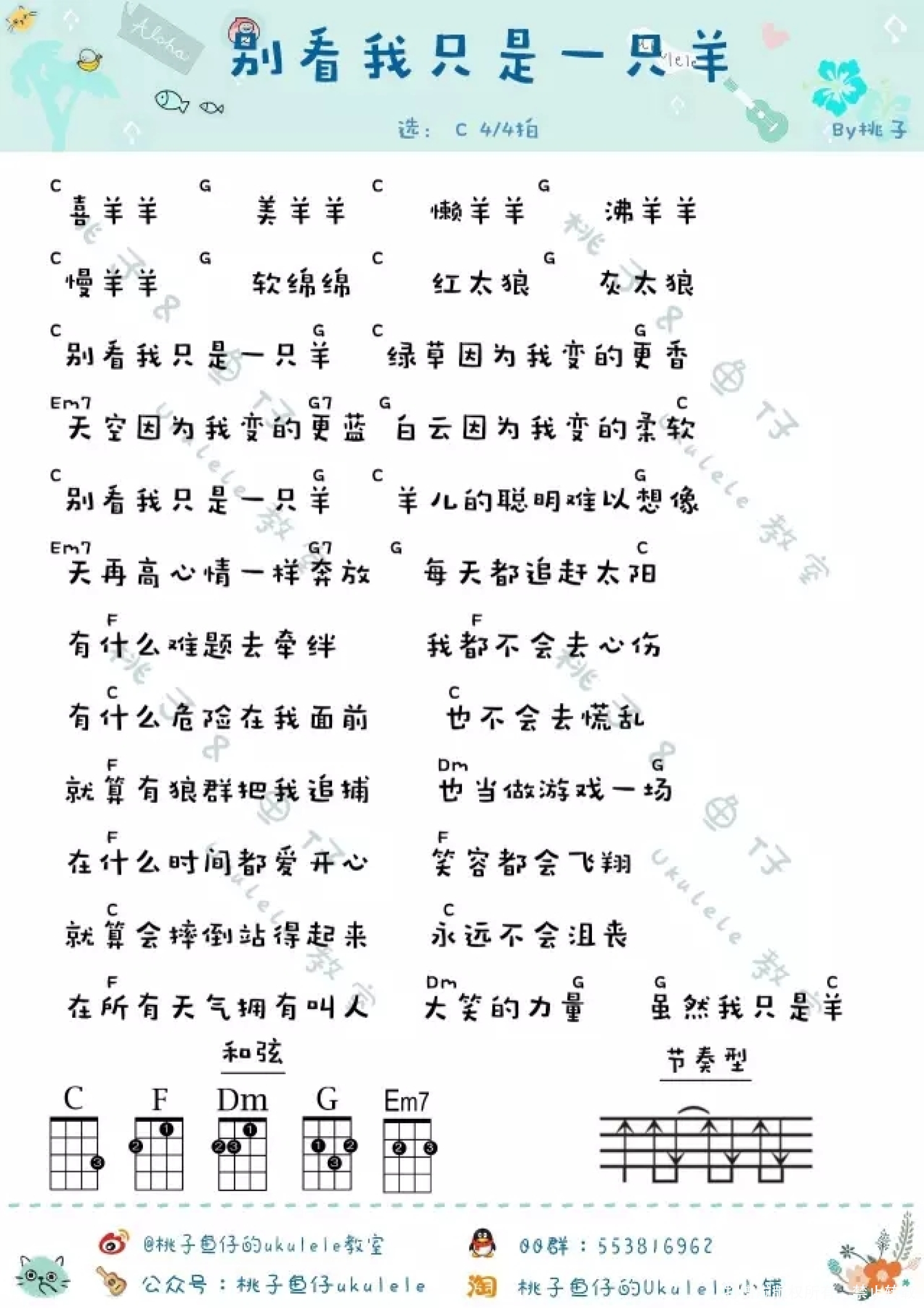 曲谱介绍: 《别看我只是一只羊》_C调尤克里里谱