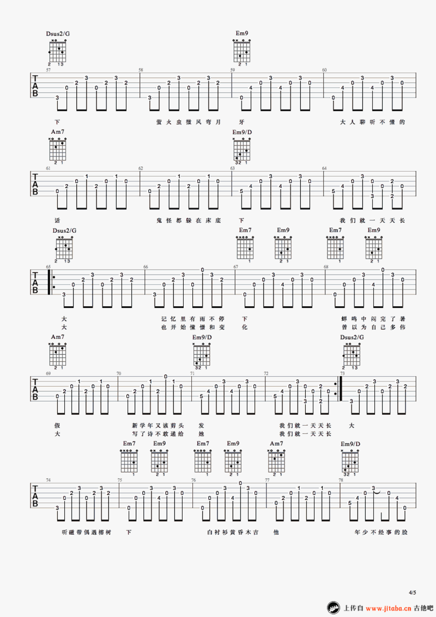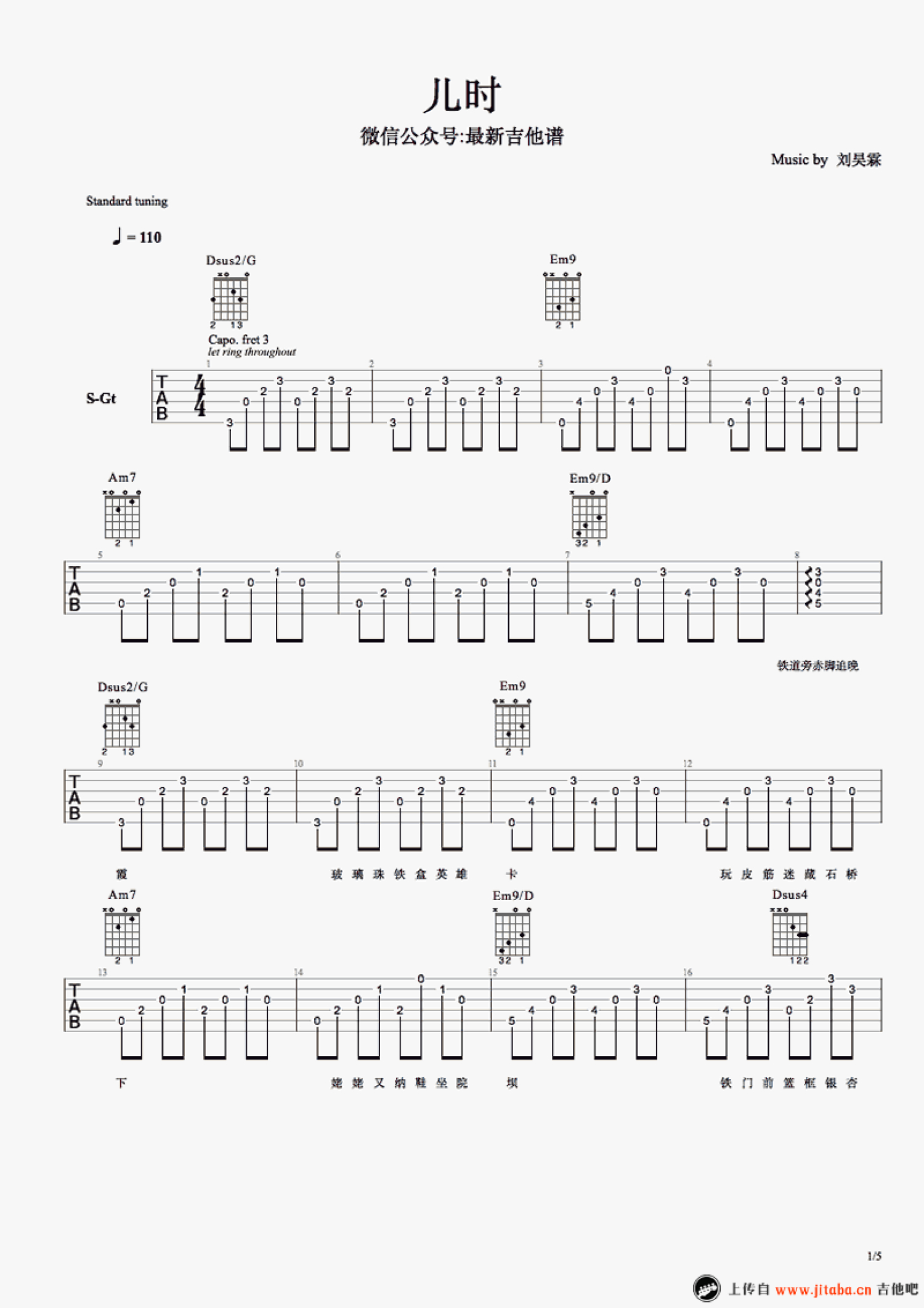 曲谱介绍: 副标题#e#刘昊霖《儿时》吉他谱,变调夹夹三品。一首好听的歌曲,儿时的日子总慢的不像话,回忆里有红袖章,发条青蛙,鸡毛毽子,信纸和崭新的回力运动鞋,这些温暖伴随着我们转眼就长大。