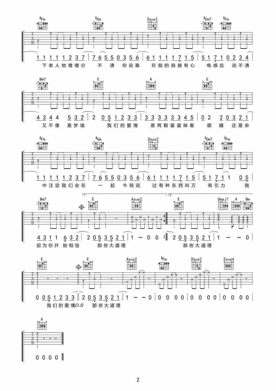 曲谱介绍: 《万有引力》吉他谱_汪苏泷_A调原版弹唱六线谱_高清图片谱分享,《万有引力》是由汪苏泷演唱的一首歌曲,由汪苏泷作词作曲。这又是一首甜甜的情歌(是因为今天是520的原因吗=_=),这首歌结合了汪苏泷唱歌的特点,加上节奏和旋律轻快悦耳,也是非常好听的一首情歌,用年轻的态度唱出了我们年轻人的爱恋。歌词给听众一种夏天里清爽的感觉,歌曲也给让我们感受到爱情的美好,让我们也相信爱人间的相互吸引是丘比特安排的命中注定。