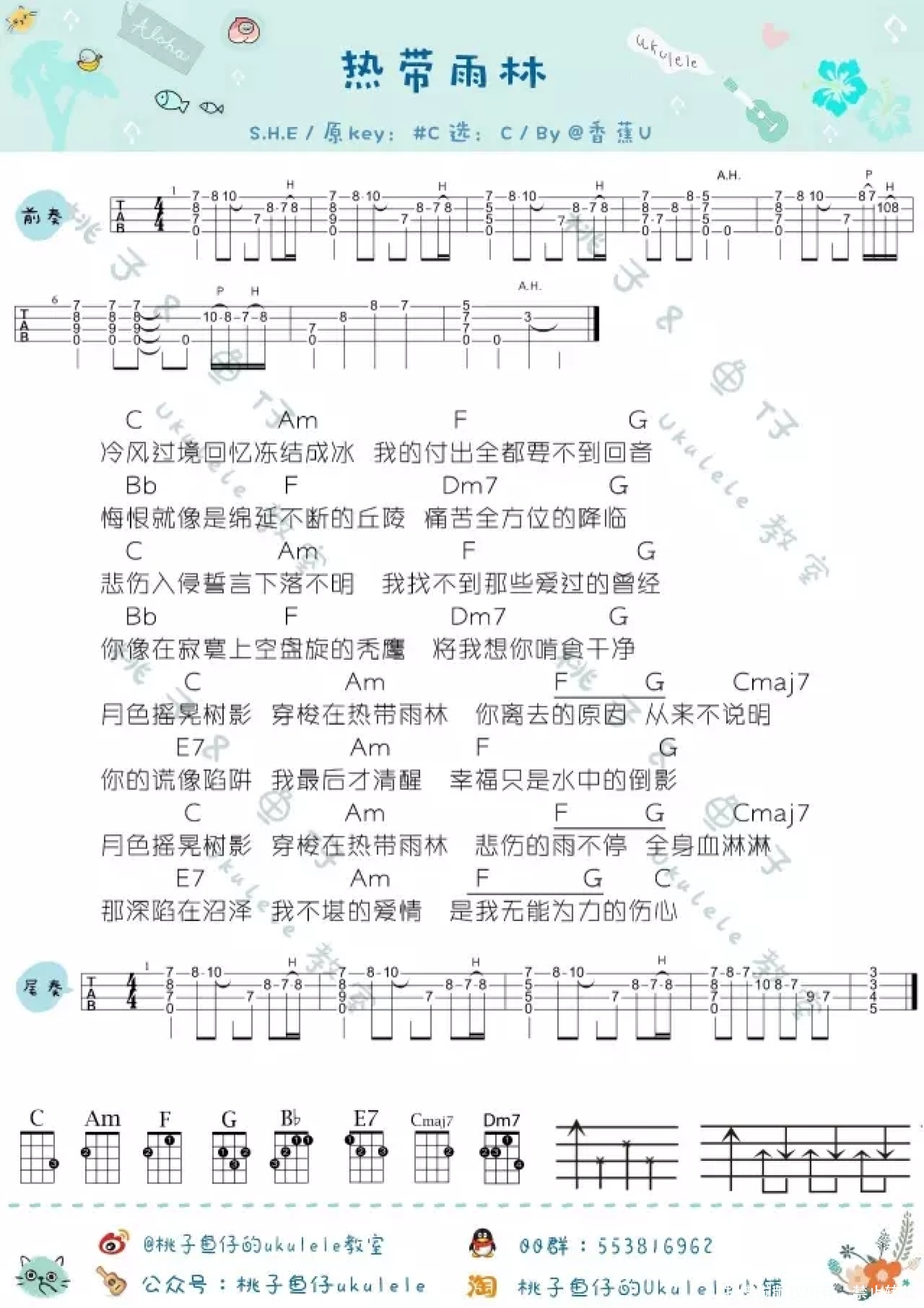 曲谱介绍: S.H.E《热带雨林》_C调尤克里里谱