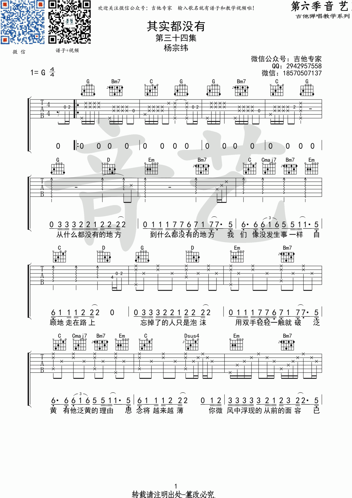 其实都没有吉他谱 - 杨宗纬 - G调吉他弹唱谱 - 原版
