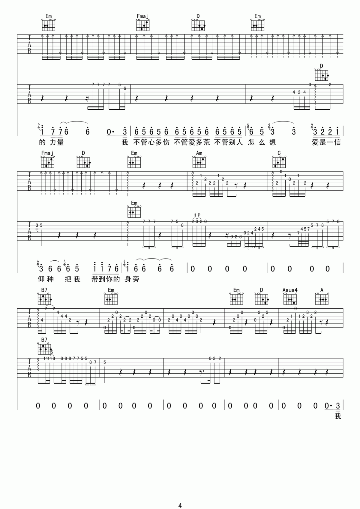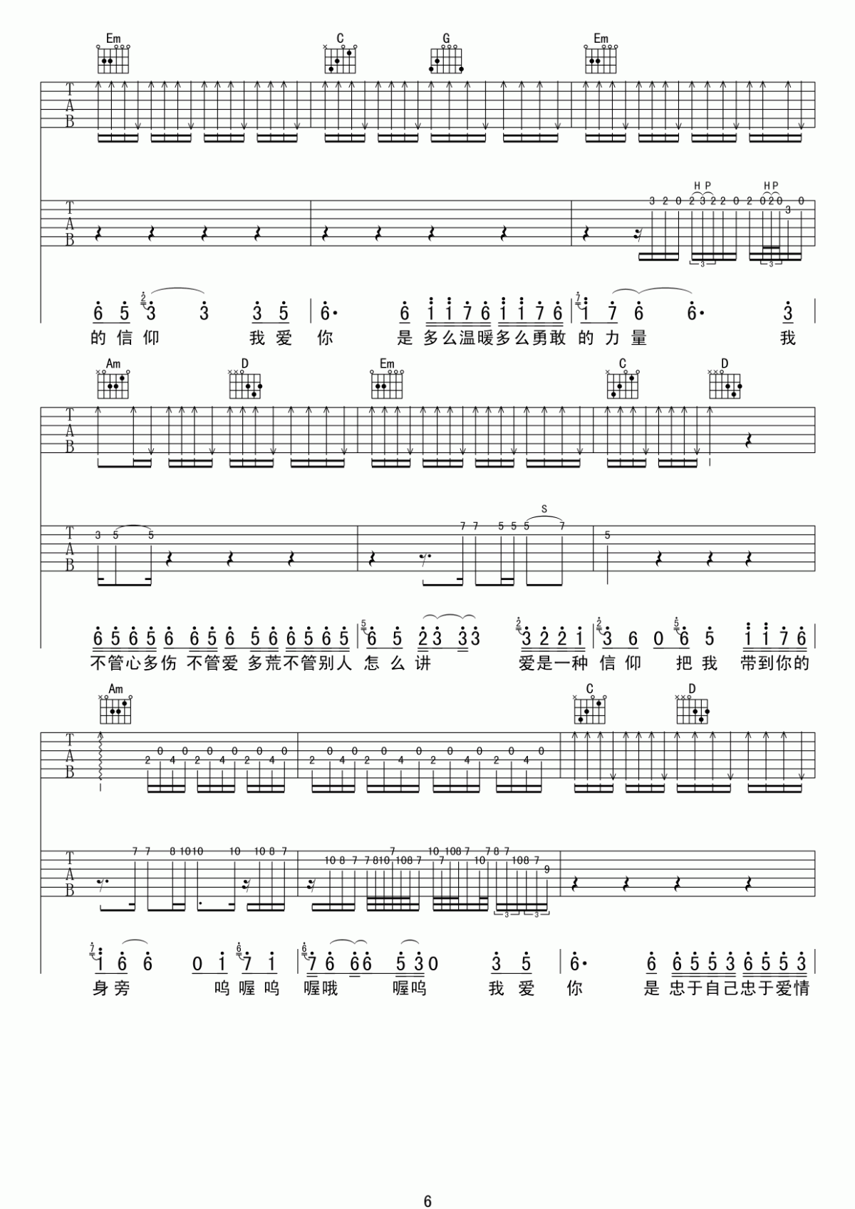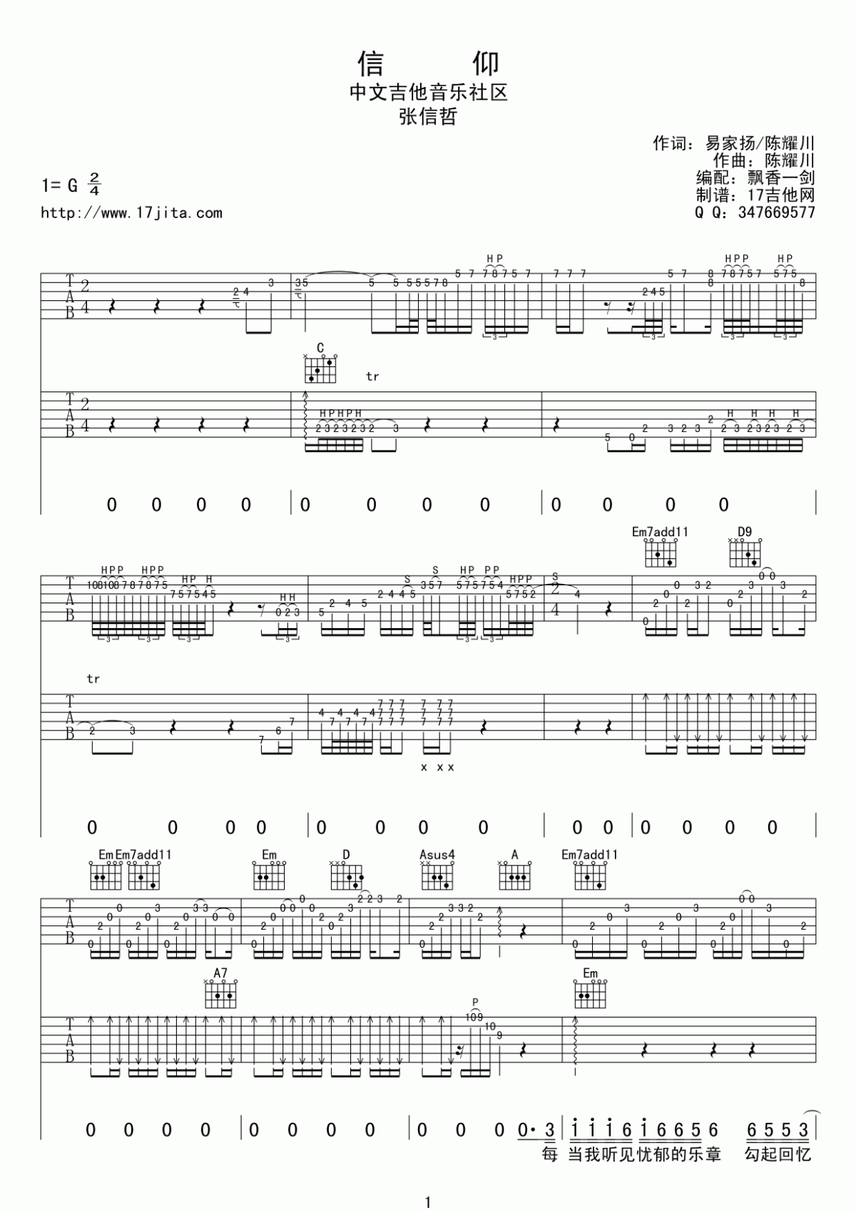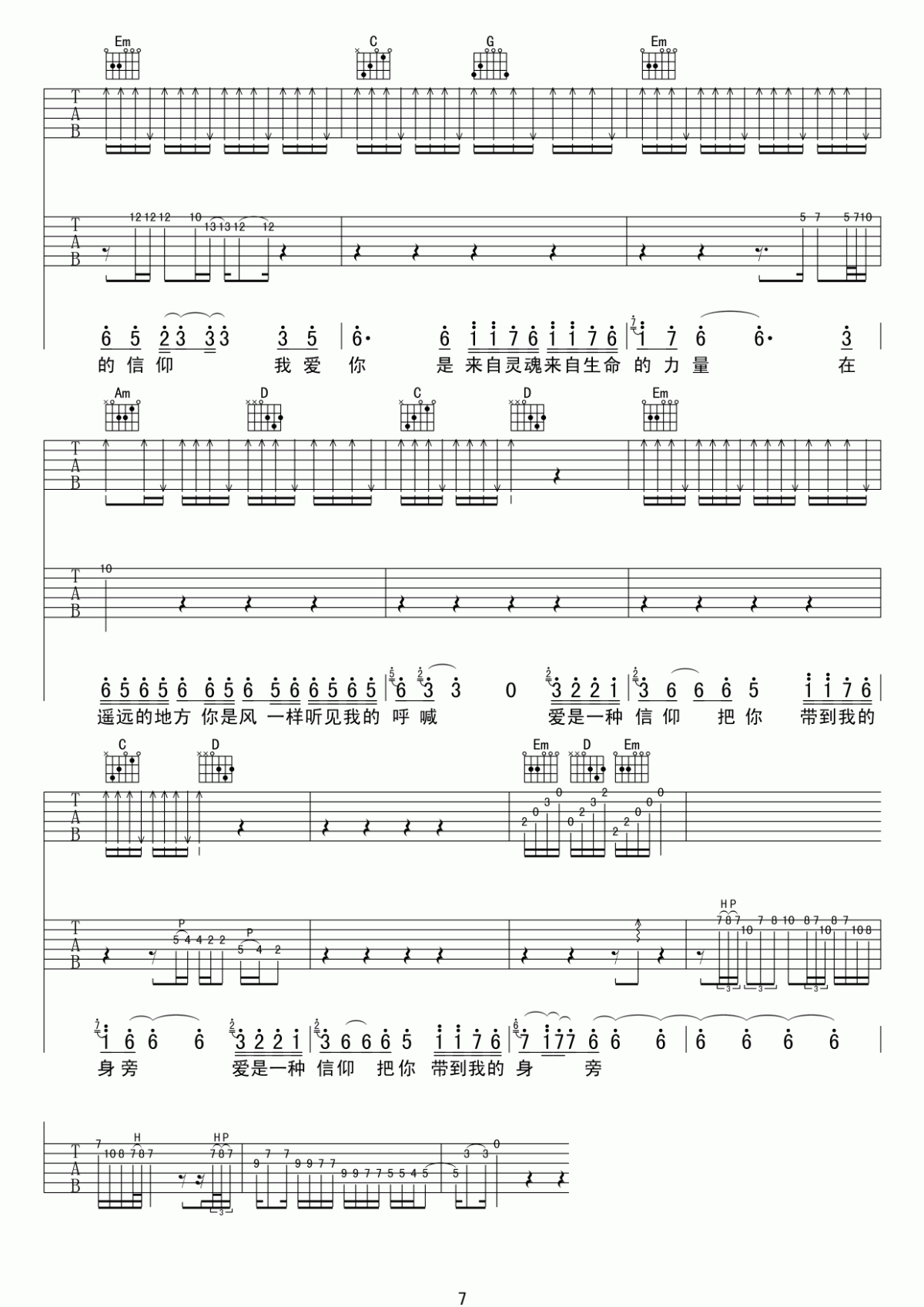 曲谱介绍: 张信哲《信仰》吉他弹唱谱,采用G调指法编配,共有7张高清图谱。
