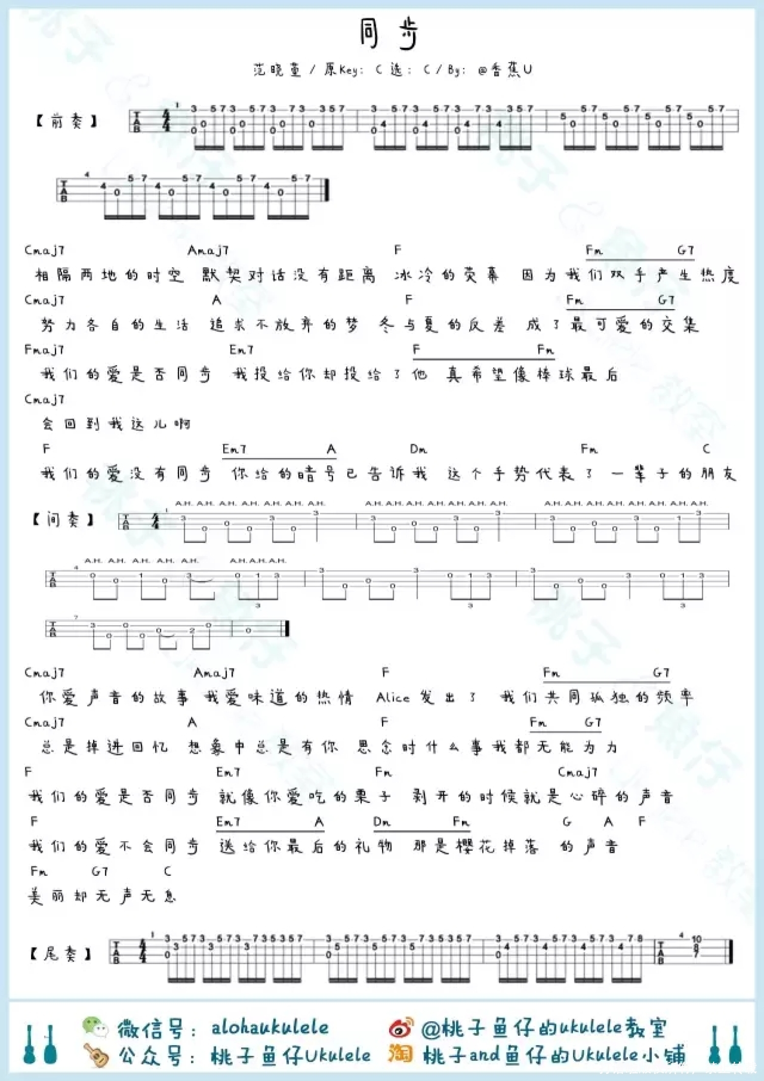 曲谱介绍: 范晓萱《同步》_C调尤克里里谱