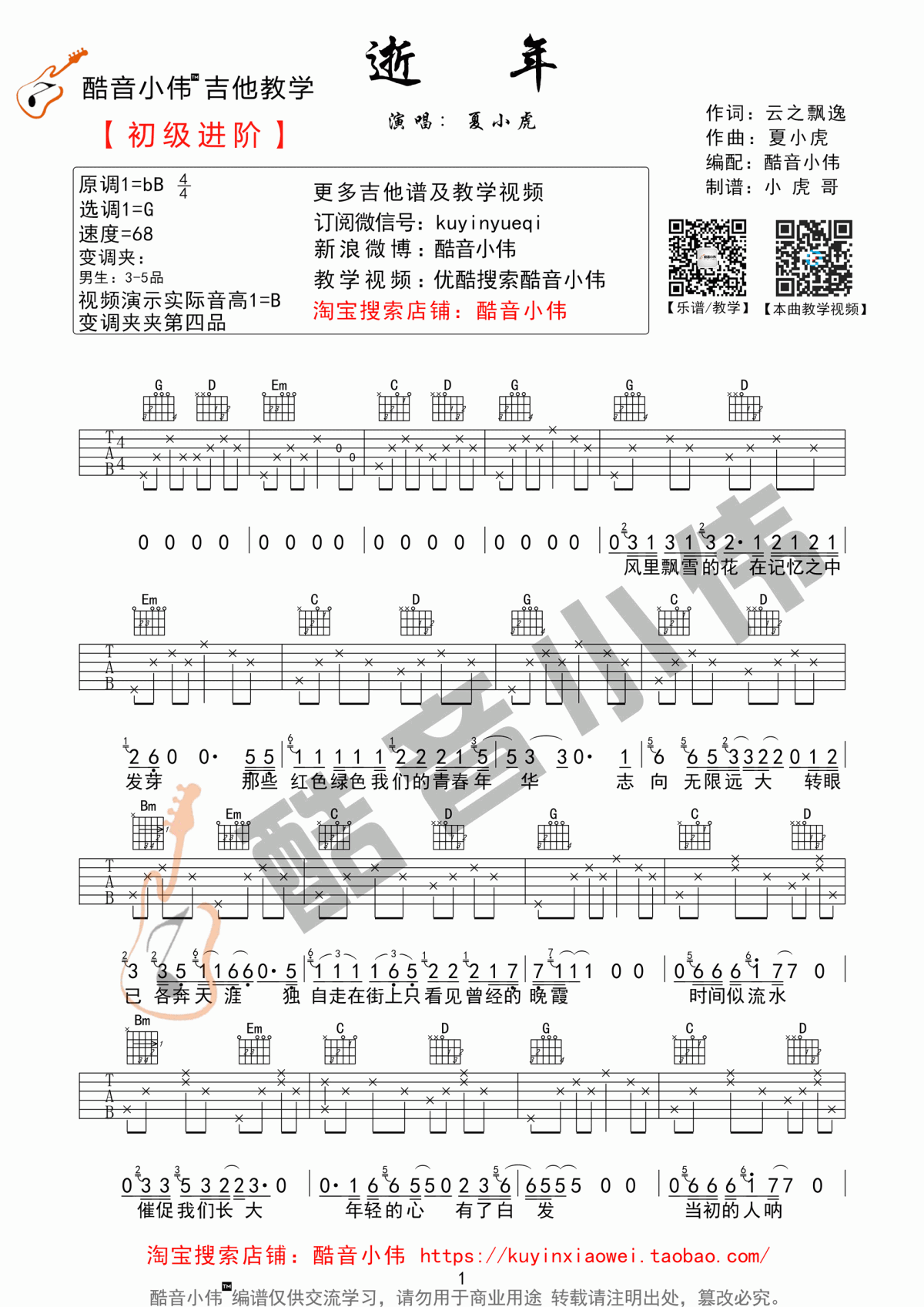逝年吉他谱 - 夏小虎 - G调吉他弹唱谱 - 原版