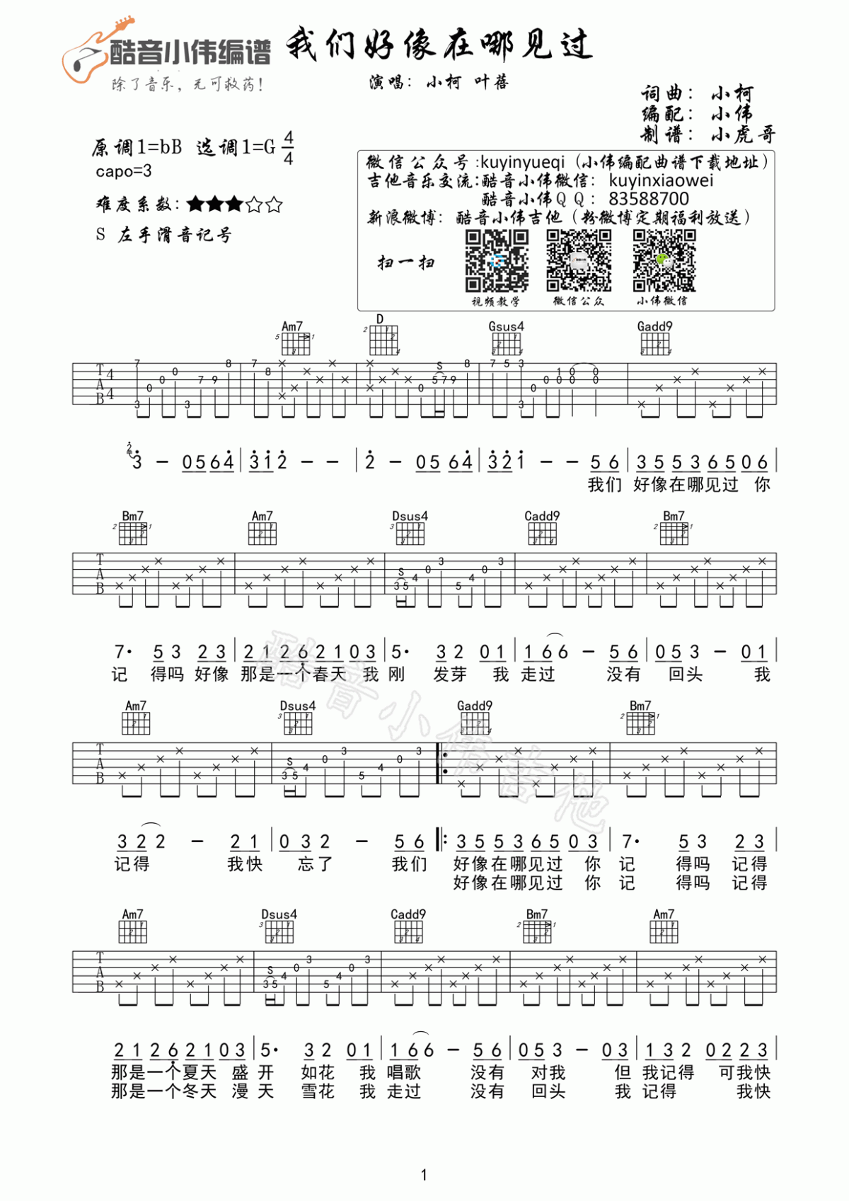 我们好像在哪见过吉他谱 - 小柯&叶蓓 - G调吉他弹唱谱