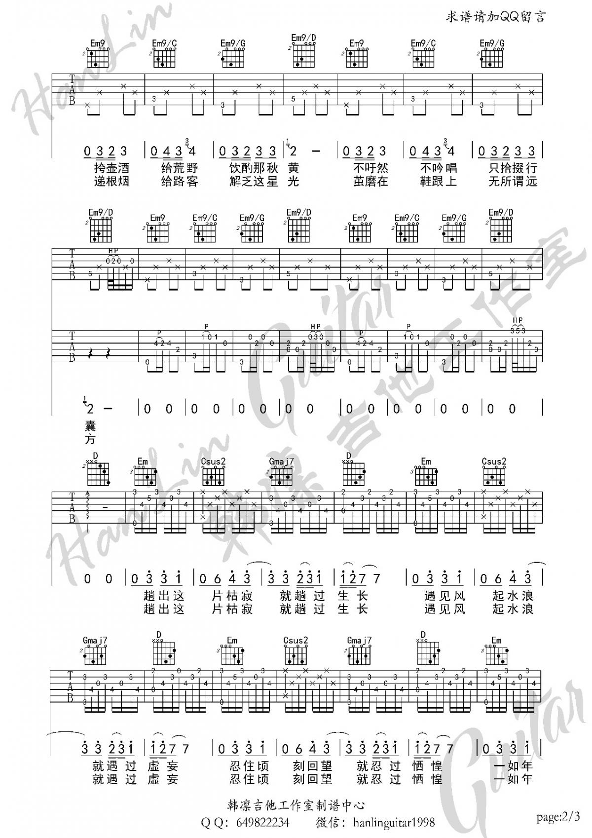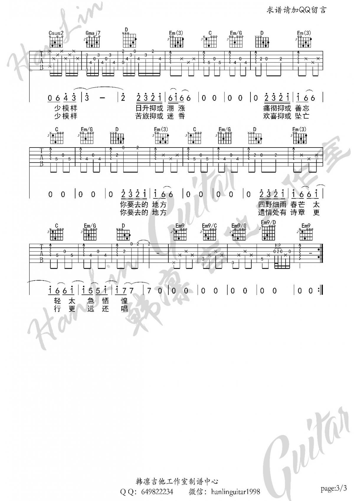 曲谱介绍: 陈鸿宇《途中》吉他弹唱谱,采用G调指法编配,共有3张高清图谱。