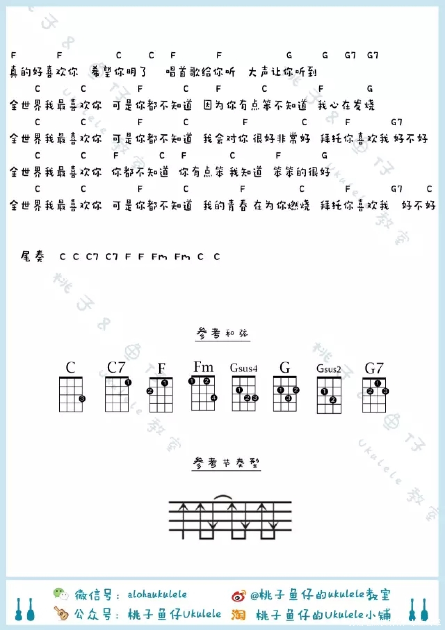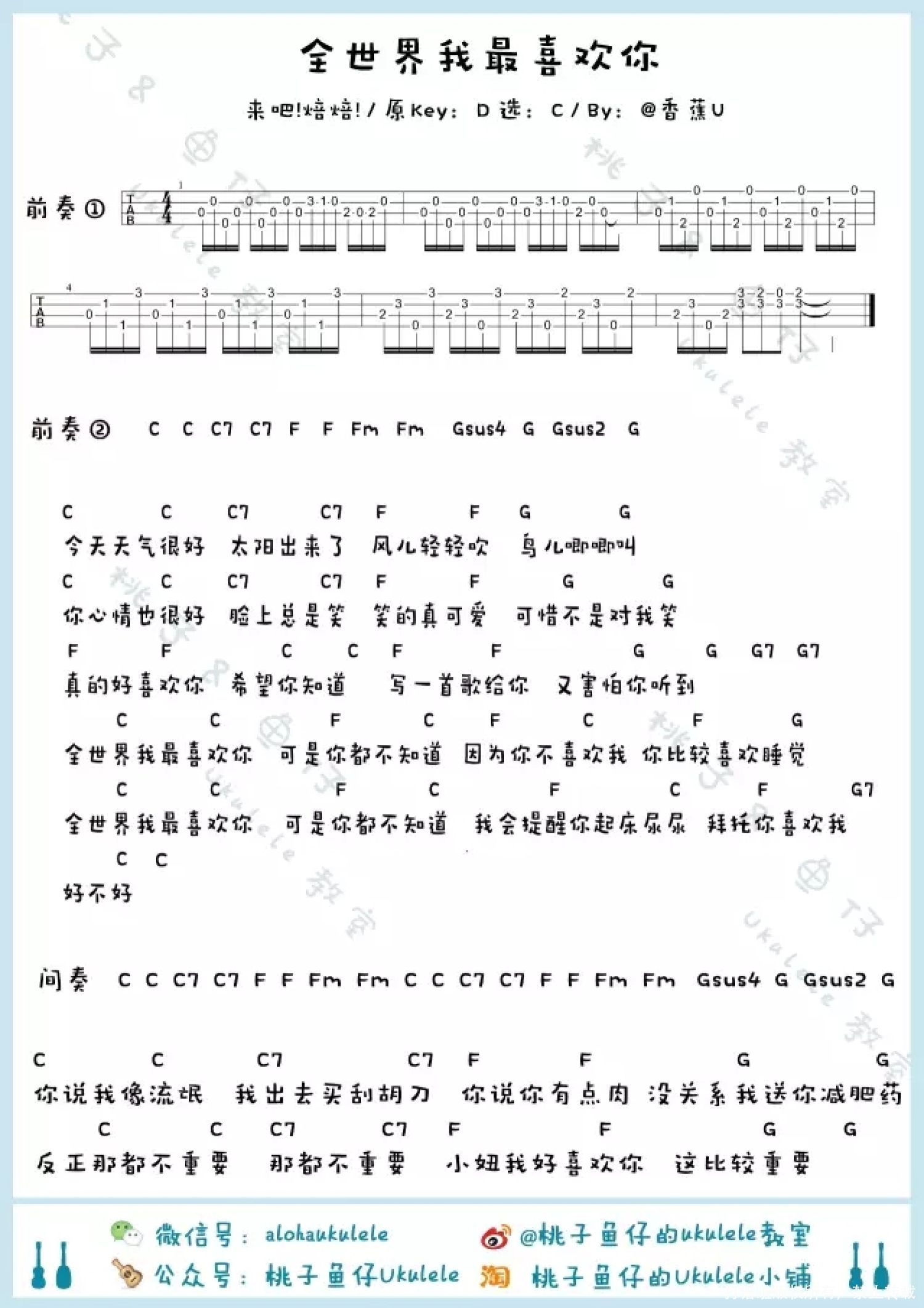 曲谱介绍: 来吧!焙焙《全世界我最喜欢你》_C调尤克里里谱