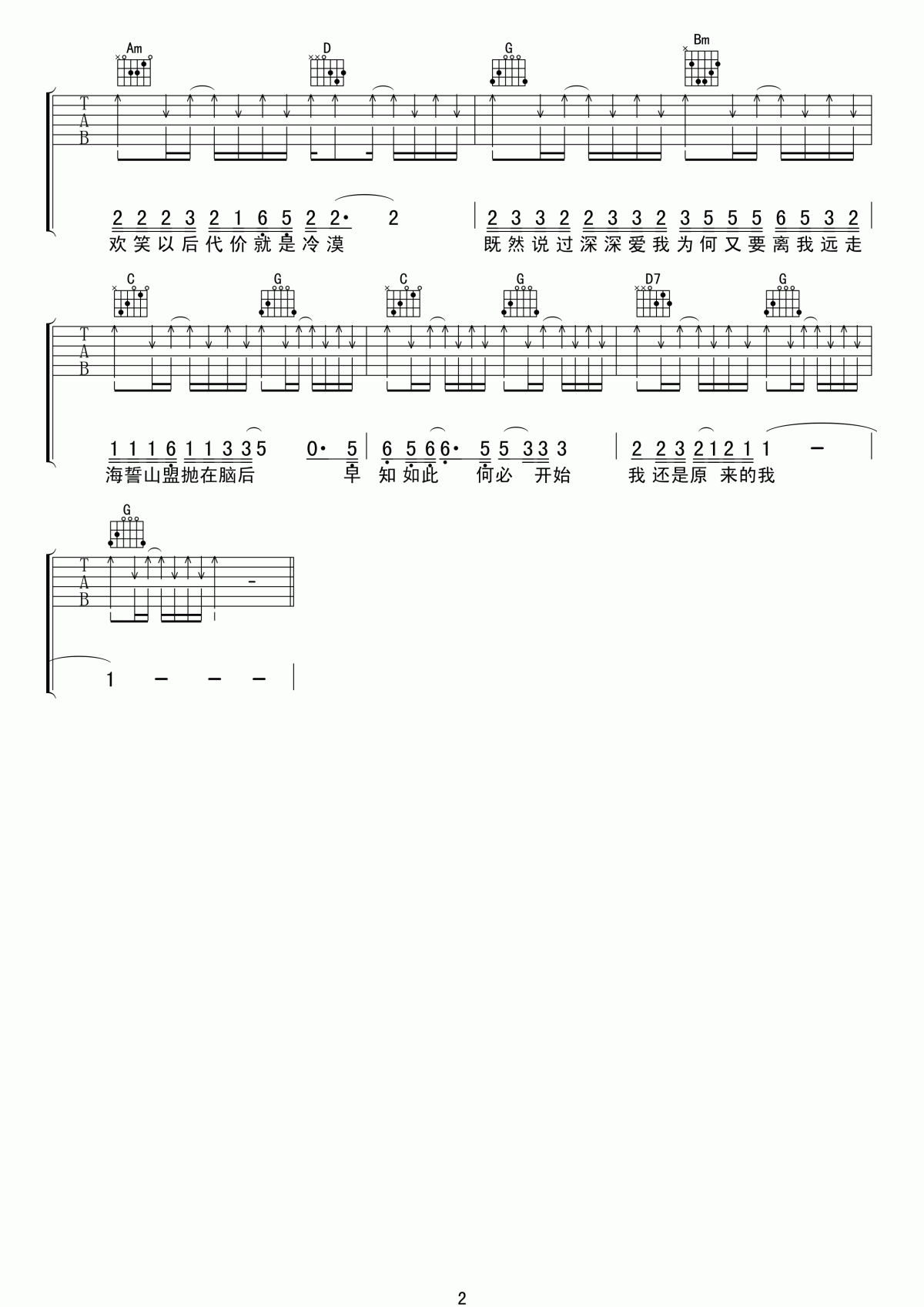 曲谱介绍: 齐秦《原来的我》吉他弹唱谱,采用G调指法编配,共有2张高清图谱,免翻页排版设计。