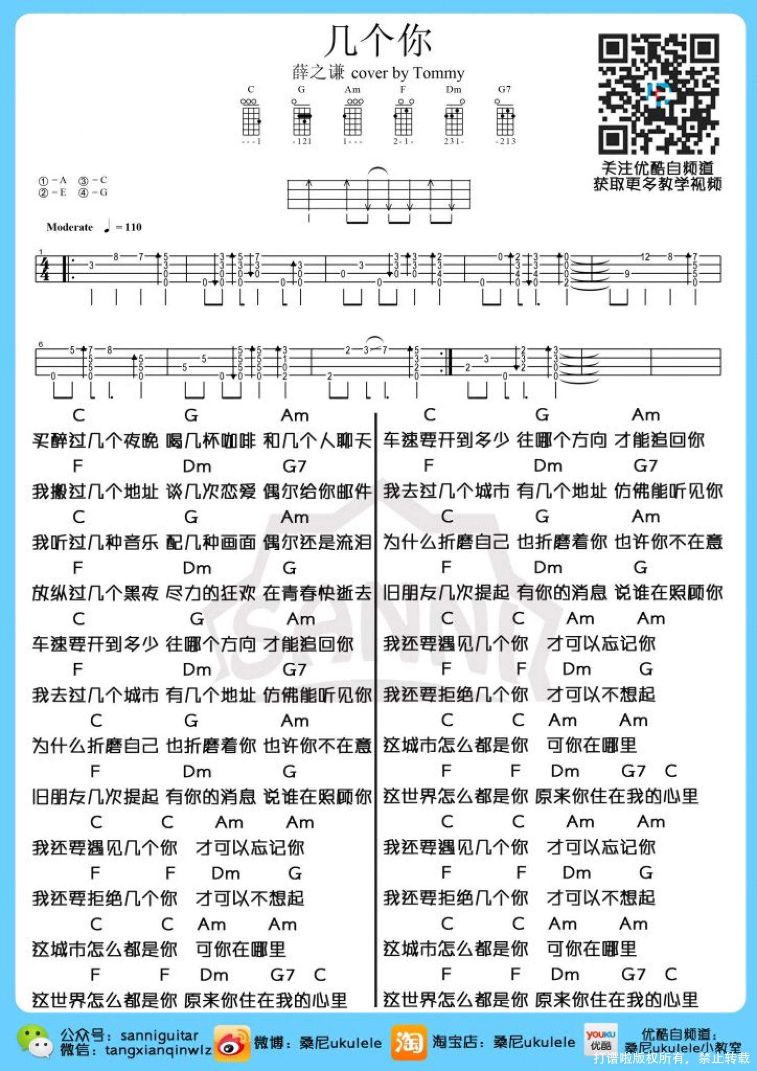 曲谱介绍: 薛之谦《几个你》_尤克里里谱