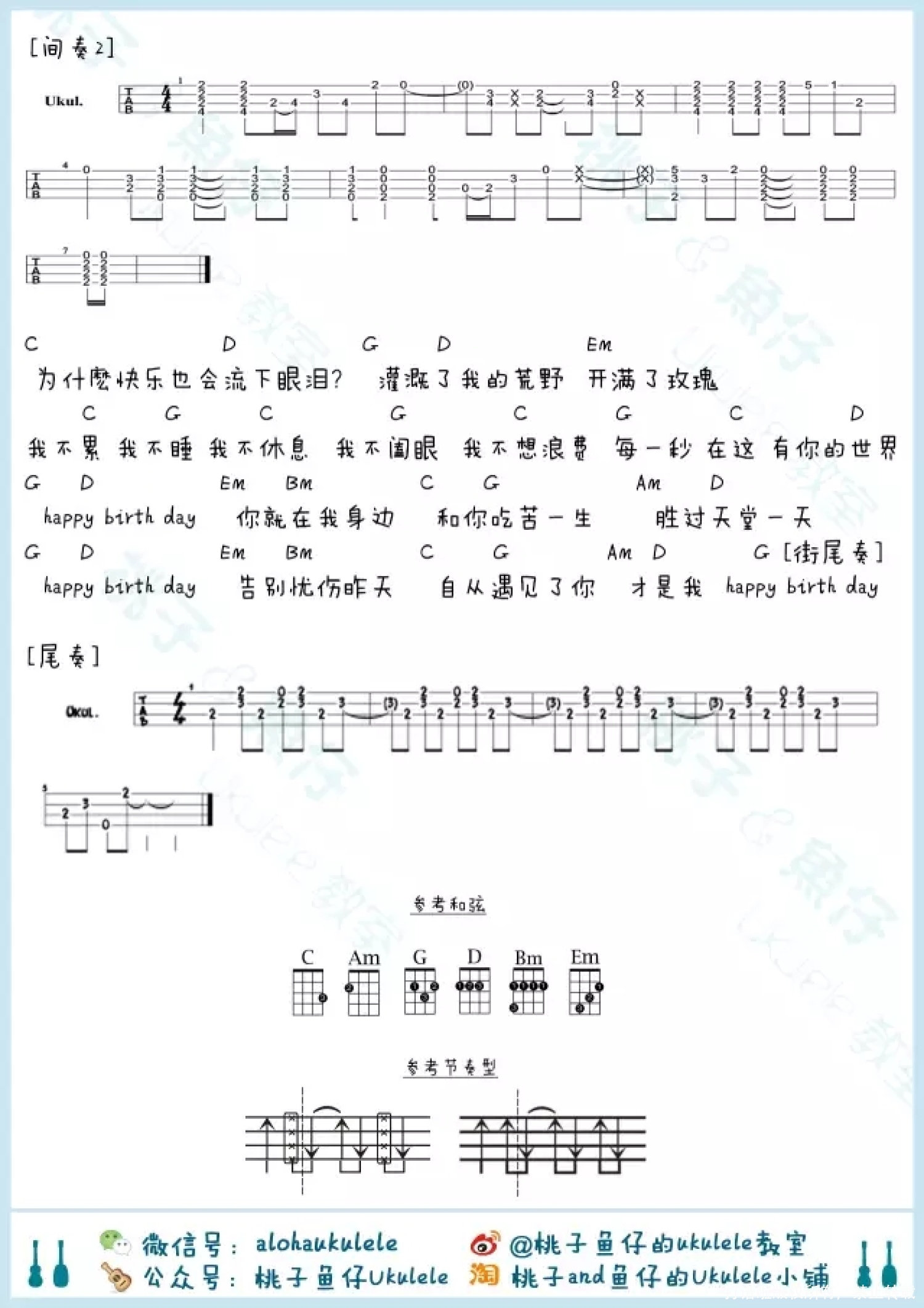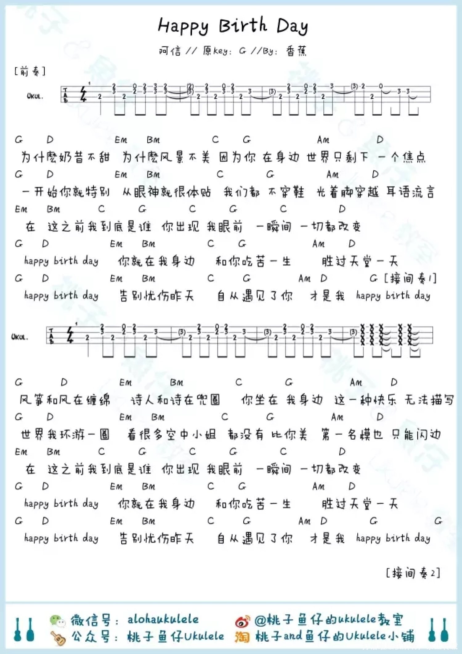 曲谱介绍: 阿信《Happy Birth Day》_C调尤克里里谱