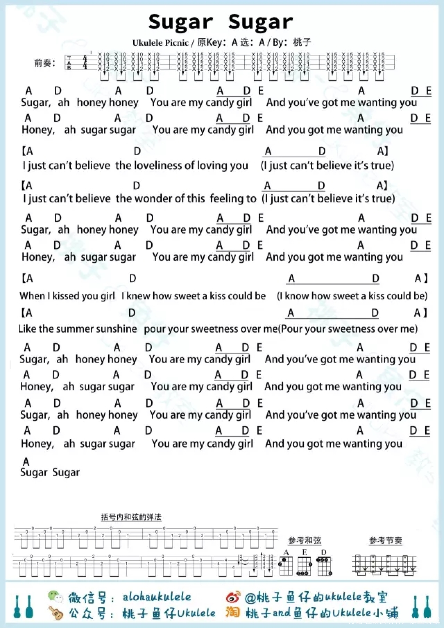 曲谱介绍: Ukulele Picnic《Sugar Suga》_A调尤克里里谱