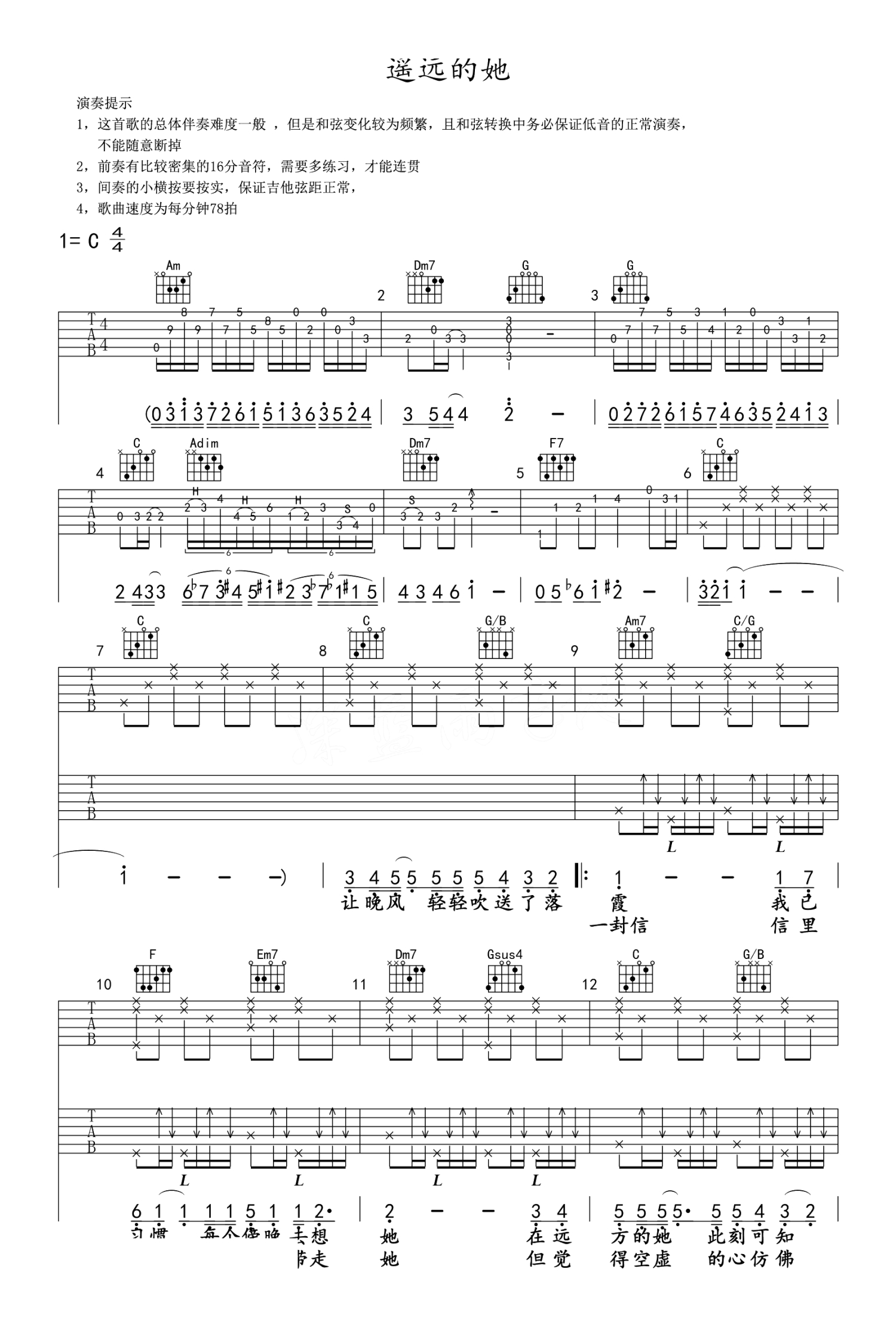 曲谱介绍: 张学友遥远的她吉他谱,C调弹唱谱,演奏提示:这首歌曲的总体伴奏难度一般,但是和弦变化较为频繁,且和弦转换中务必保证低音的正常演奏,不能随意断掉。前奏多加练习才能熟练连贯;间奏的小横按需要按实,保证吉他弦距正常;