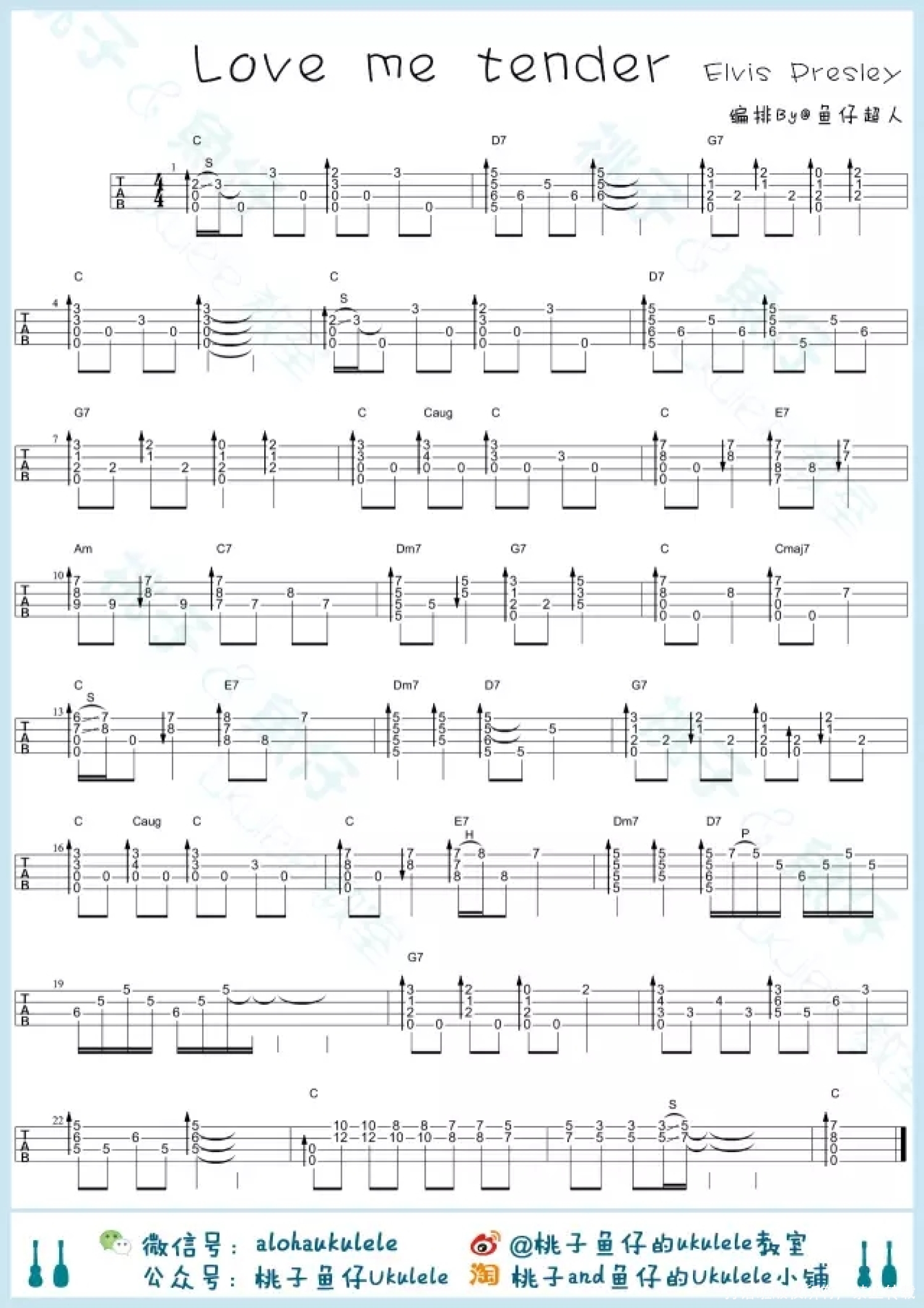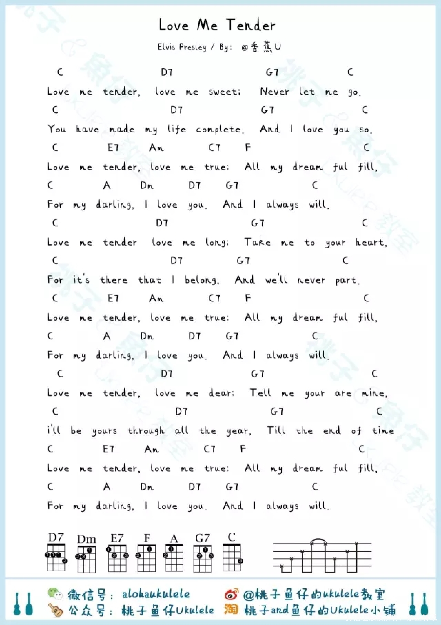 曲谱介绍: Elvis Presiey《Love Me Tende》_C调尤克里里谱