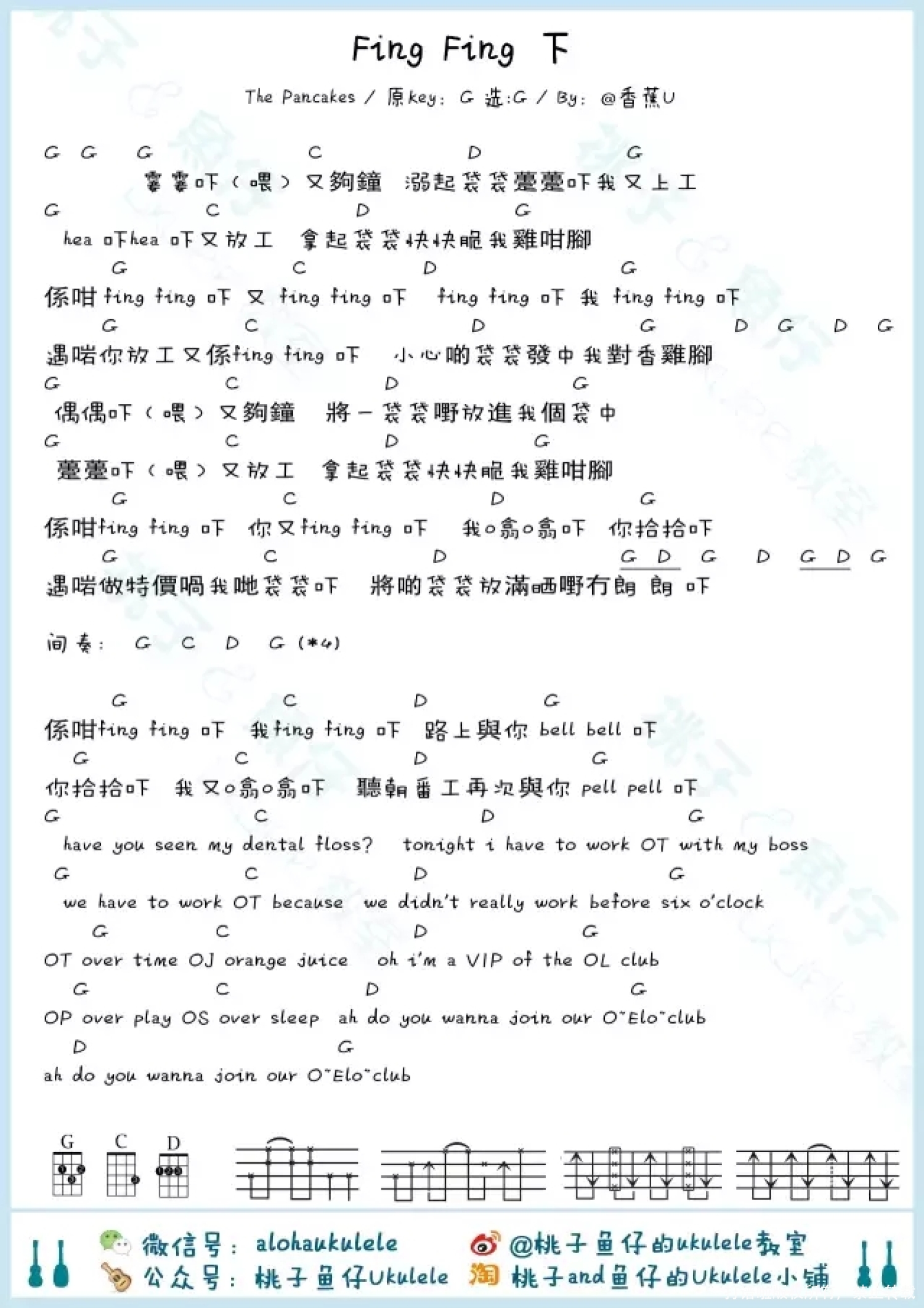 曲谱介绍: The pancakes《Fing Fing下》_G调尤克里里谱